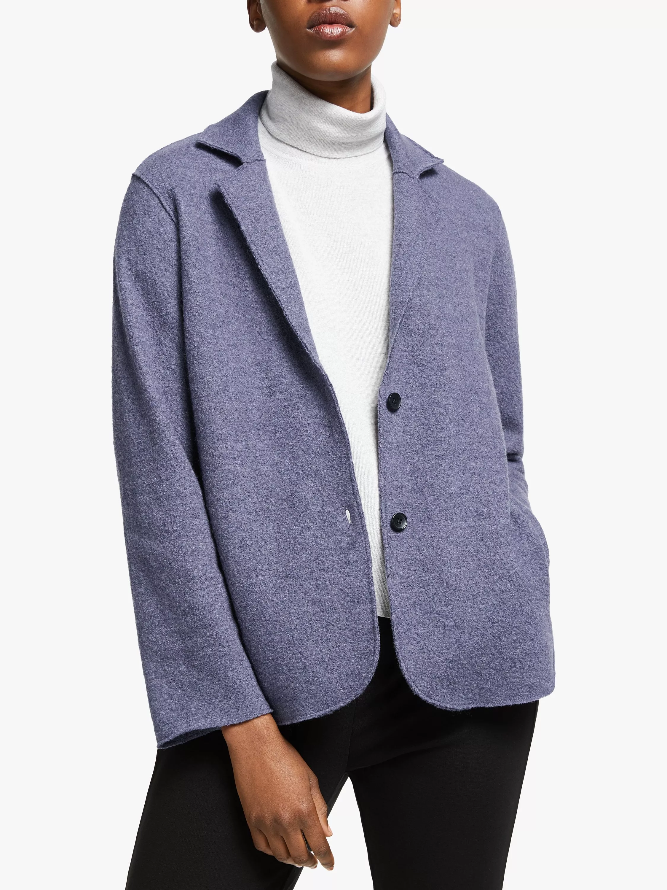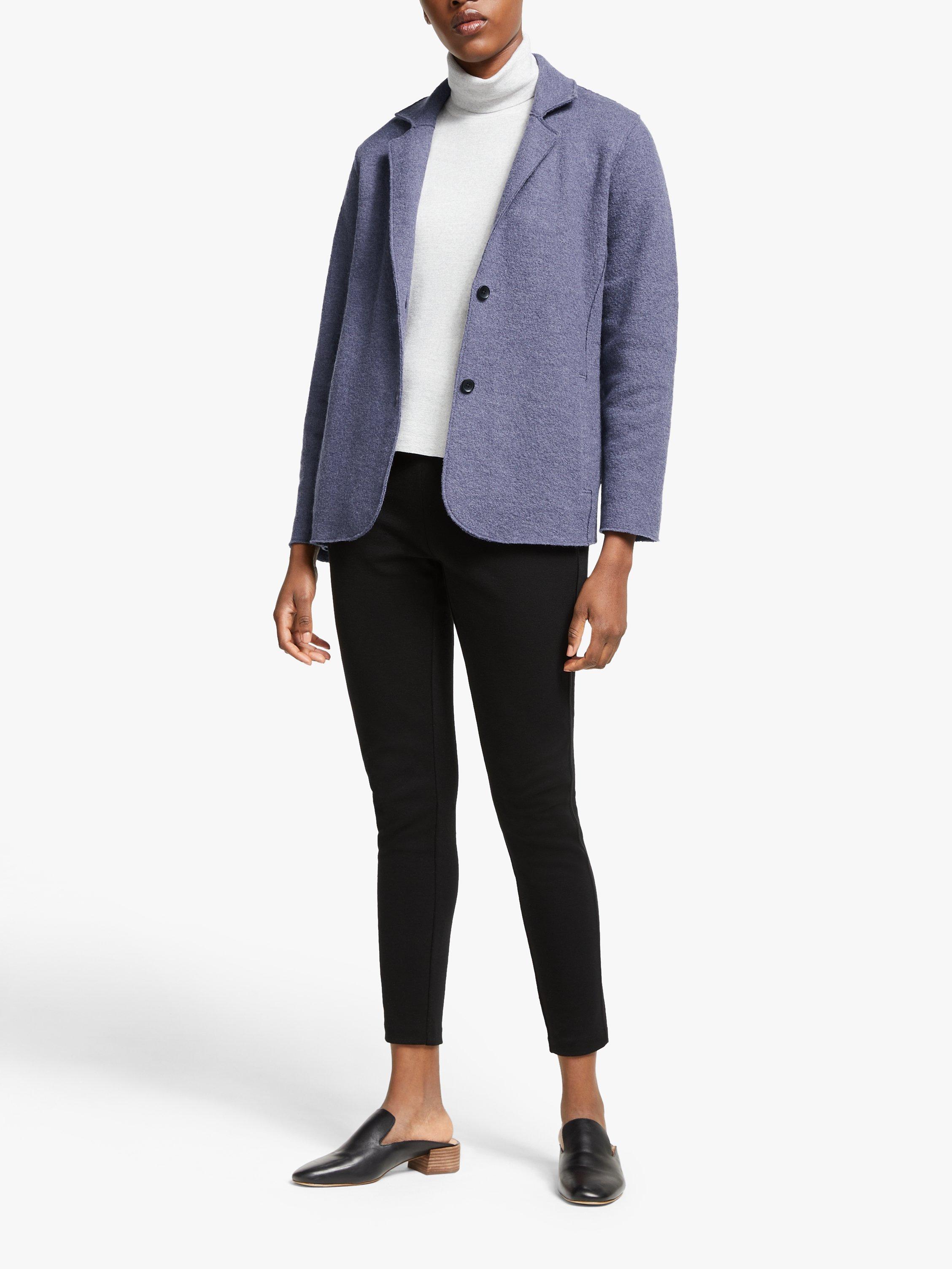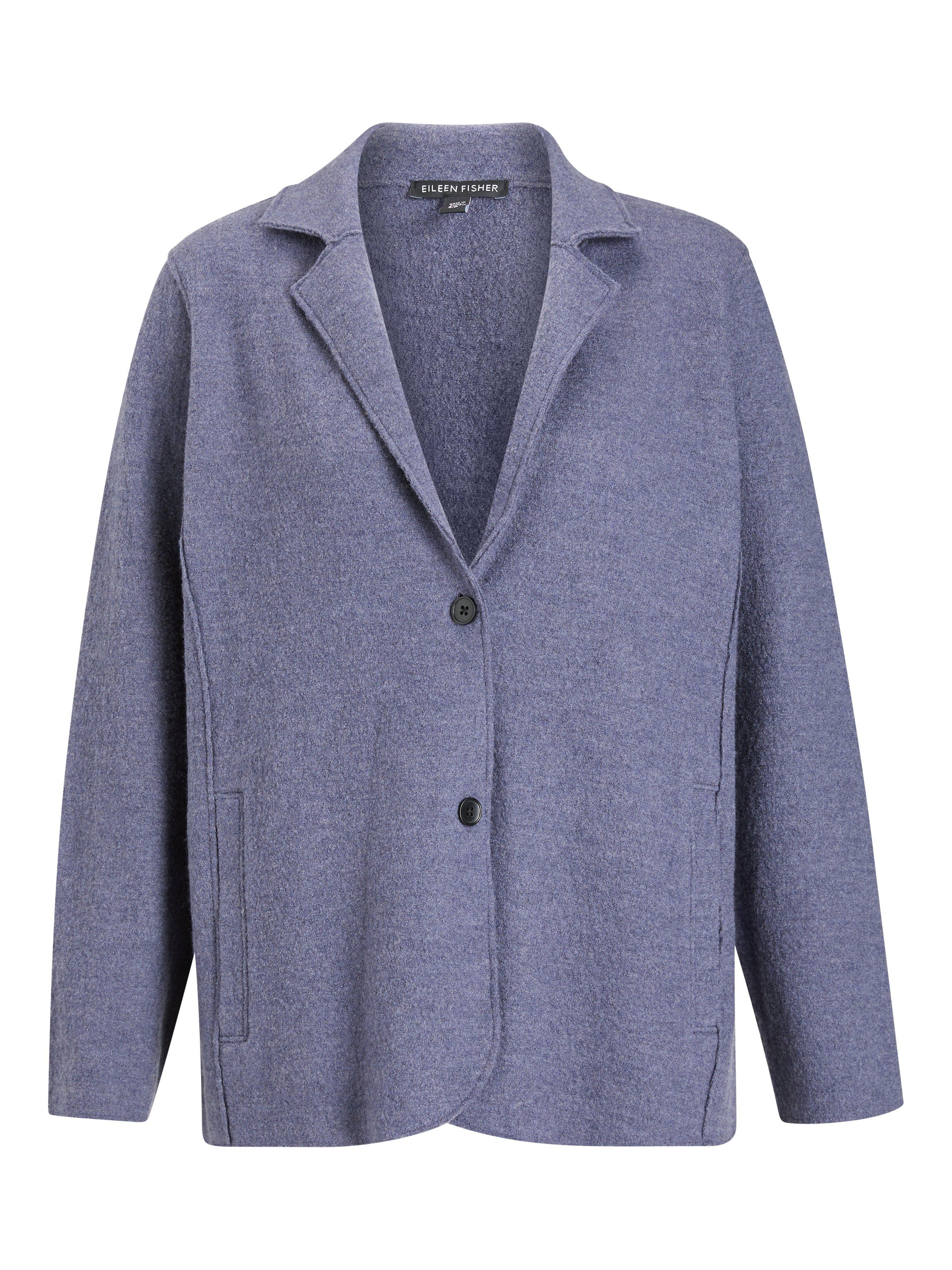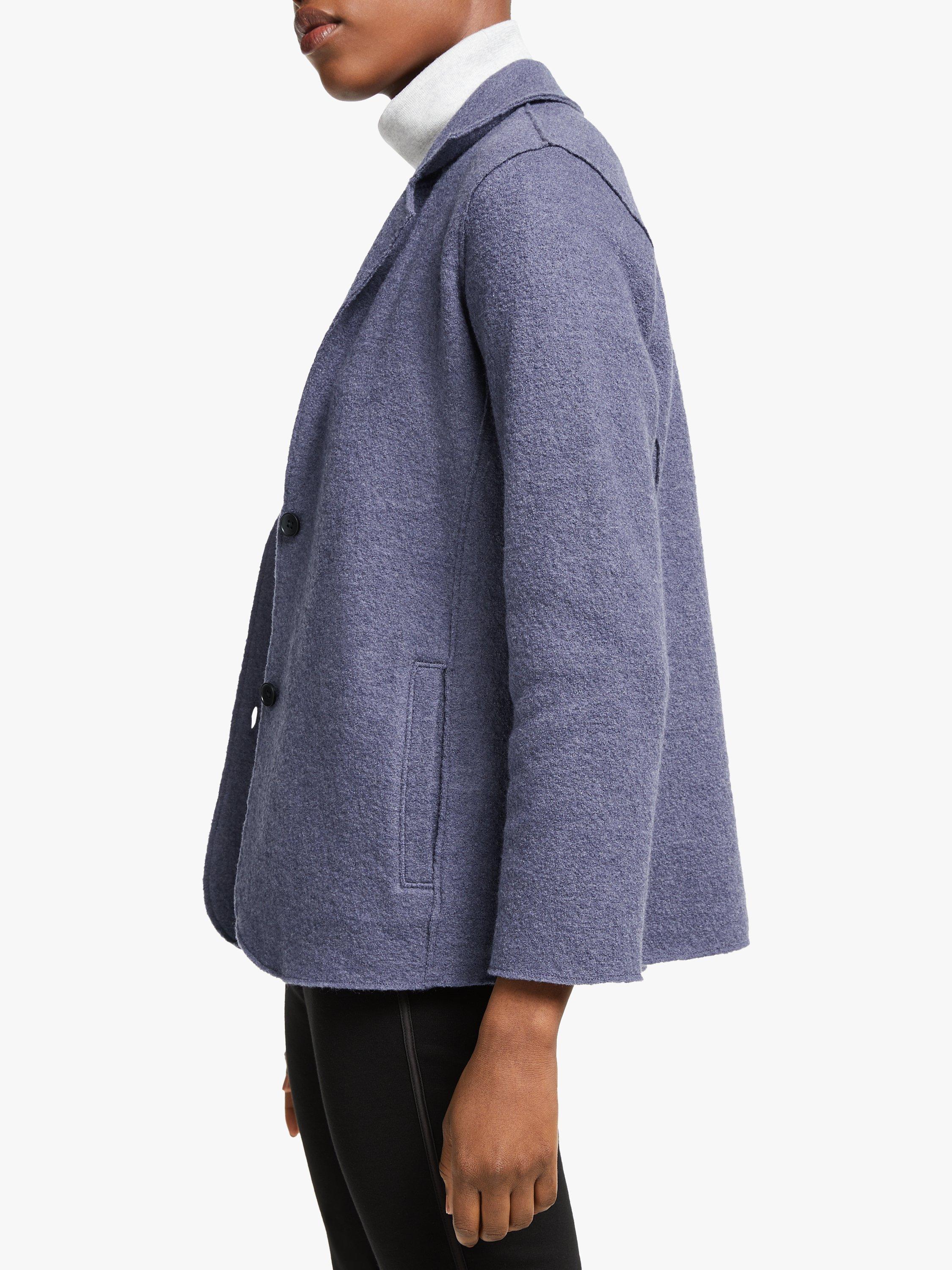 A lightweight boiled wool jacket from EILEEN FISHER, this soft outerwear piece lends a more relaxed feel to the classic blazer. Relaxed fitting with cut edges and exposed seams giving it a more pared-back look, it has front button fastenings, notch collar lapels and welt pockets neatly tucked into the side seams for a clean finish. Layer over anything from slip dresses to simple tops and tailored trousers.
