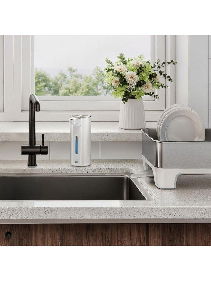 This touchless automatic liquid soap dispenser is a mess-free solution for your bathroom or kitchen sink, providing a hygienic, hands-free experience, detecting hands within an 8cm range and dispensing soap in just 0.2 seconds.