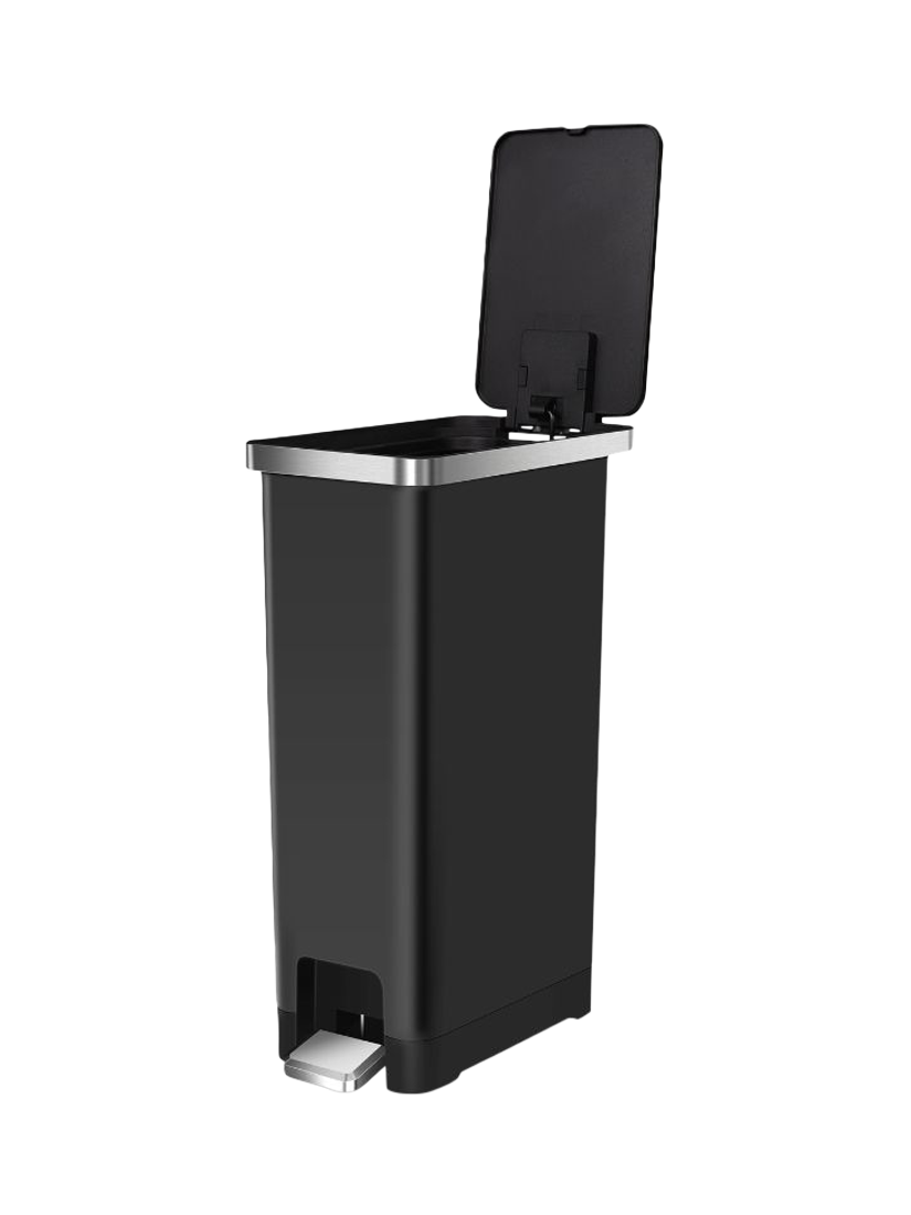 This pedal bin features a metallic-look ring that adds refined elegance to any room. Its slim, tall design fits perfectly into your home or office, saving space without compromising on style.