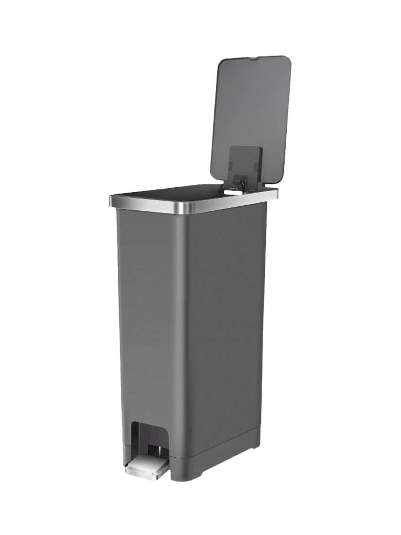 This pedal bin features a metallic-look ring that adds refined elegance to any room. Its slim, tall design fits perfectly into your home or office, saving space without compromising on style.