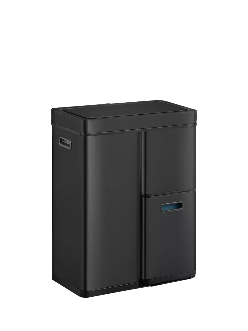 The Mirage Plus makes waste separation easy thanks to its three compartments (one of 30 litres capacity and two of 15 litres each) and the lid of the bin is cleverly designed to hide any unsightly bag overhang.