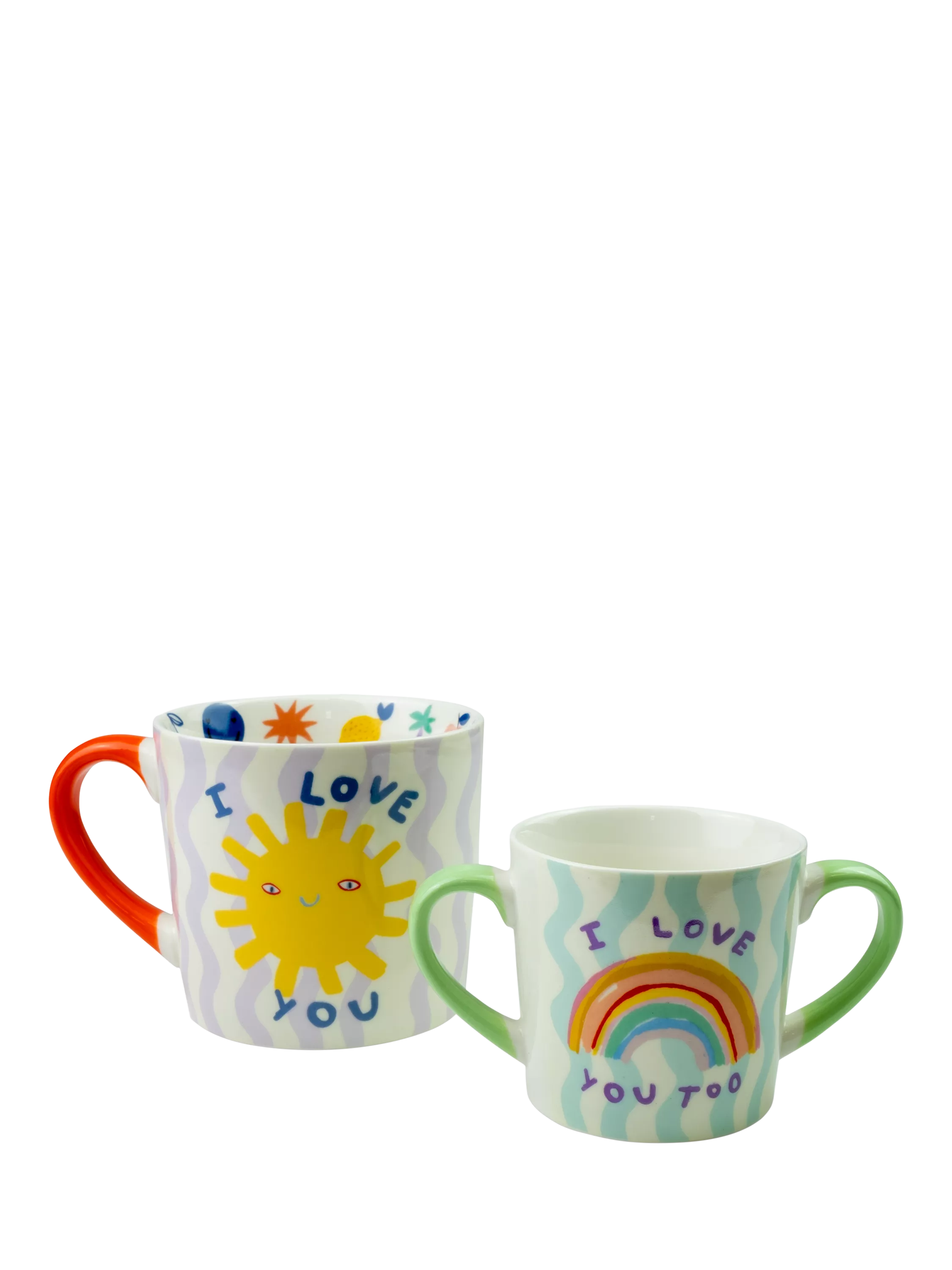 Pack of 2 ceramic mugs, for adult and baby, designed by Eleanor Bowmer.