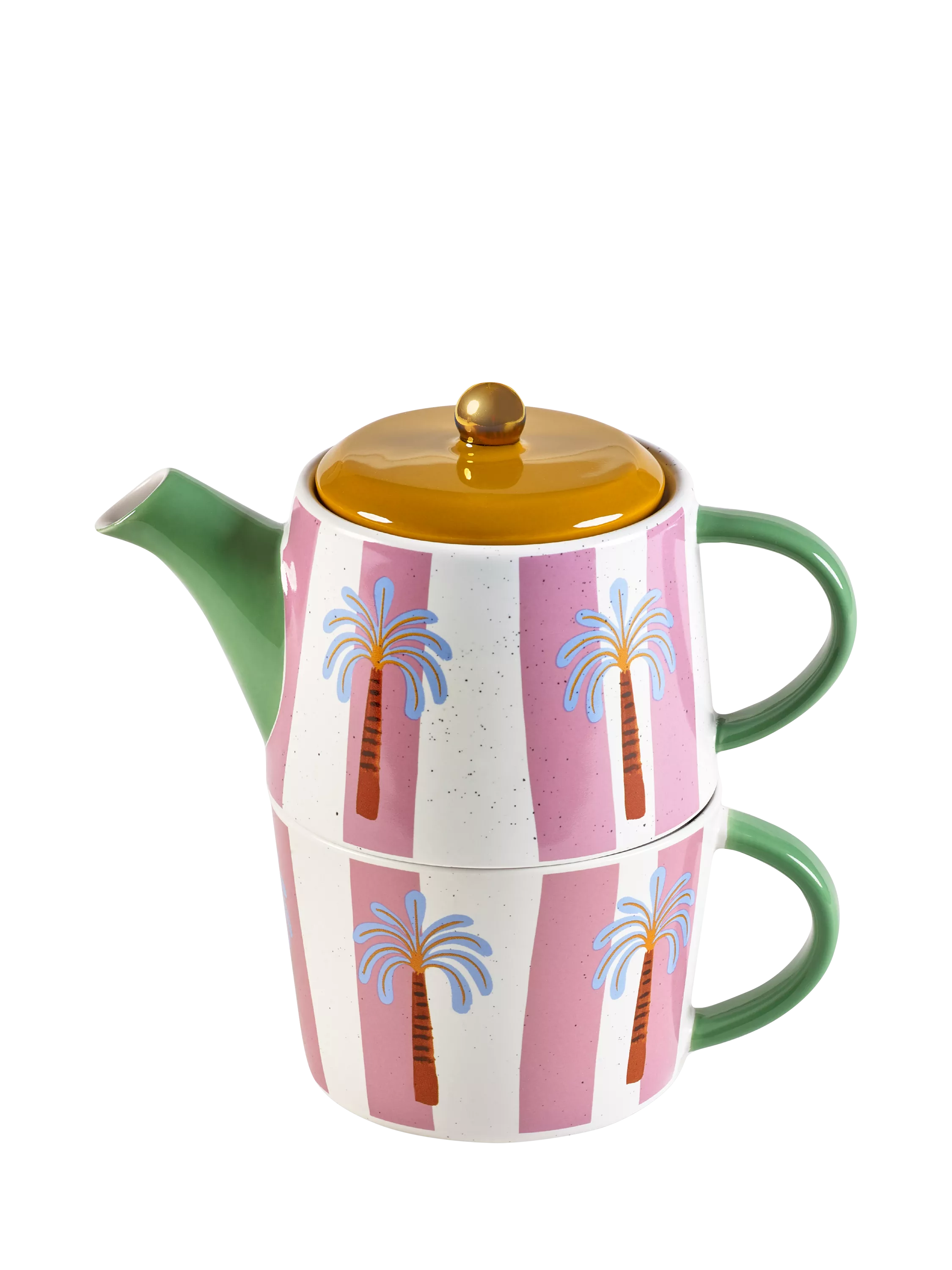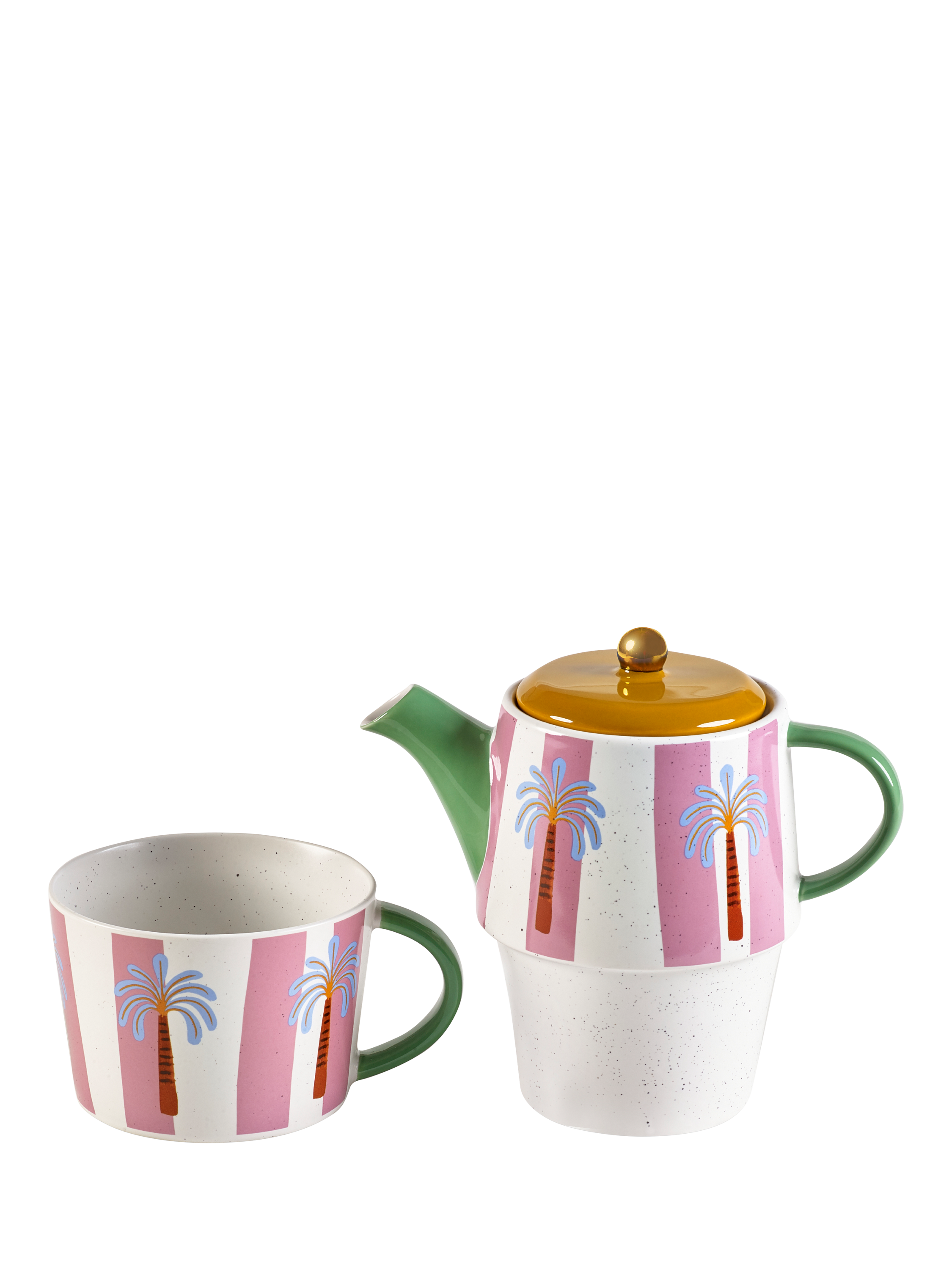 The stackable design includes a 700ml teapot and matching 300ml mug.