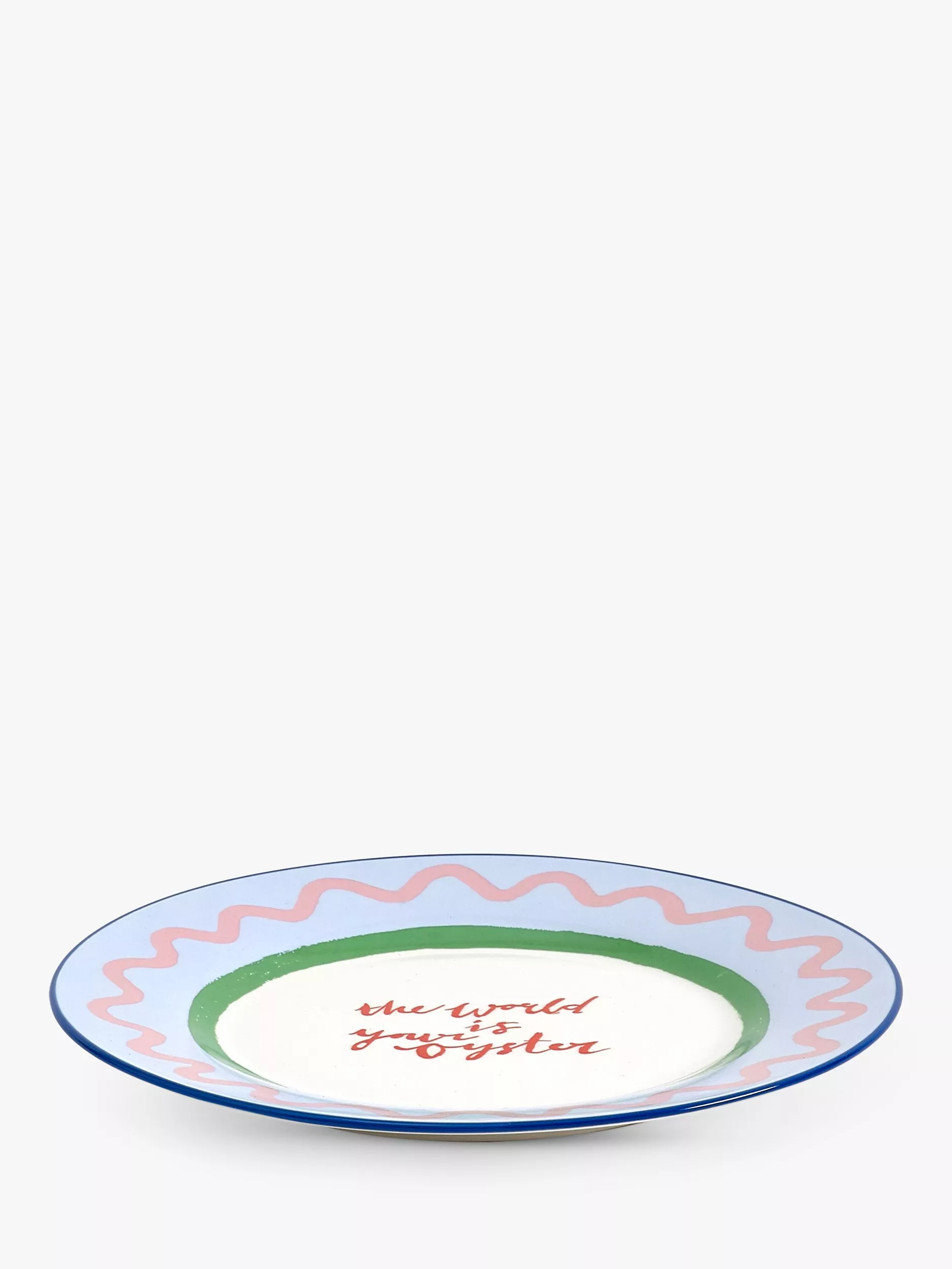 Side plate from British designer Eleanor Bowmer with a joyful slogan: 'The World is Your Oyster'. Crafted from stoneware, it features a hand-illustrated squiggle design, finished in a glossy glaze. Pair with the coordinating Electric Coast dinnerware range, inspired by the golden coastlines of Los Angeles. Dishwasher and microwave safe.