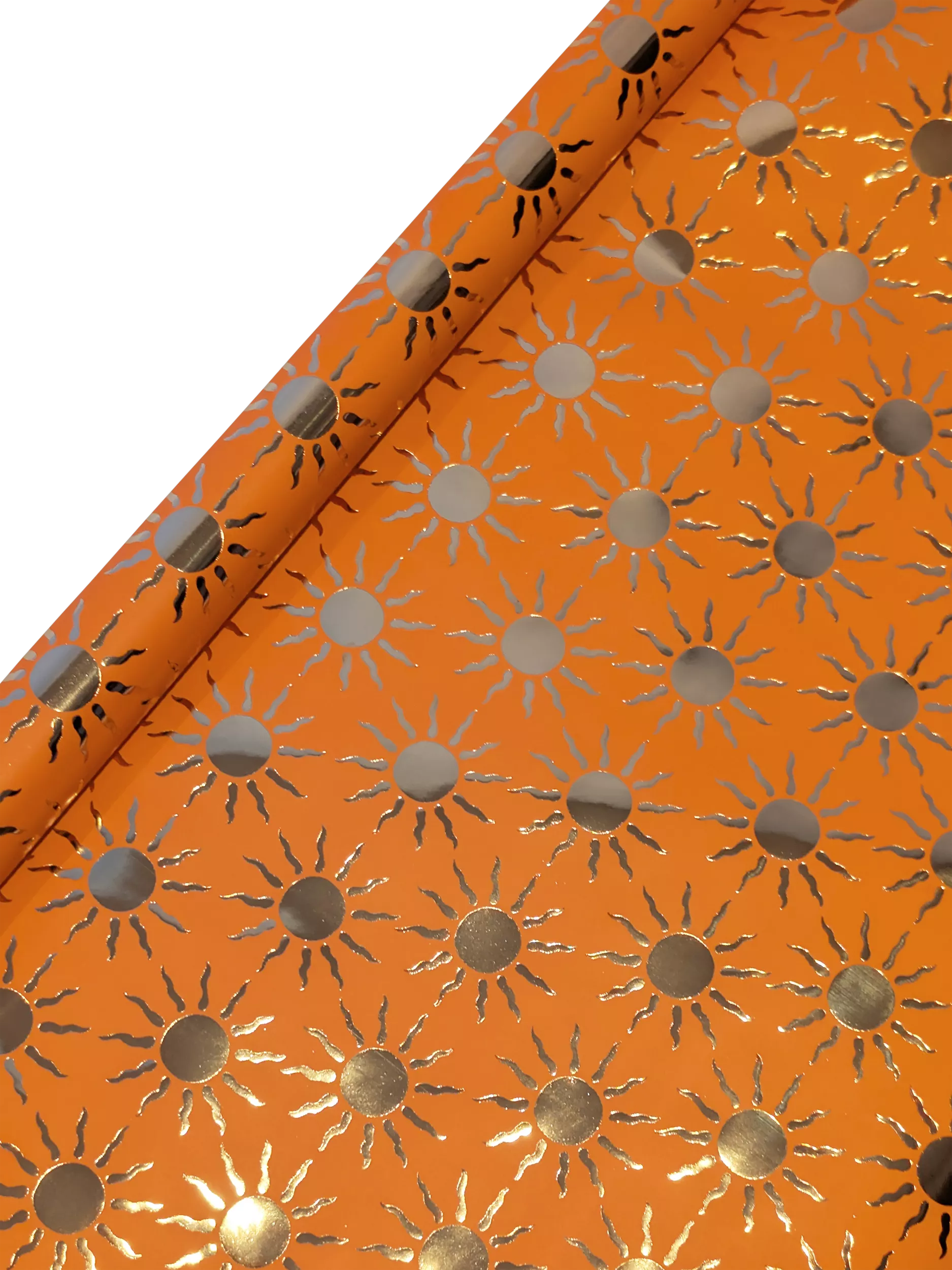 A 3m roll of wrapping paper with a vibrant foil sun design.
