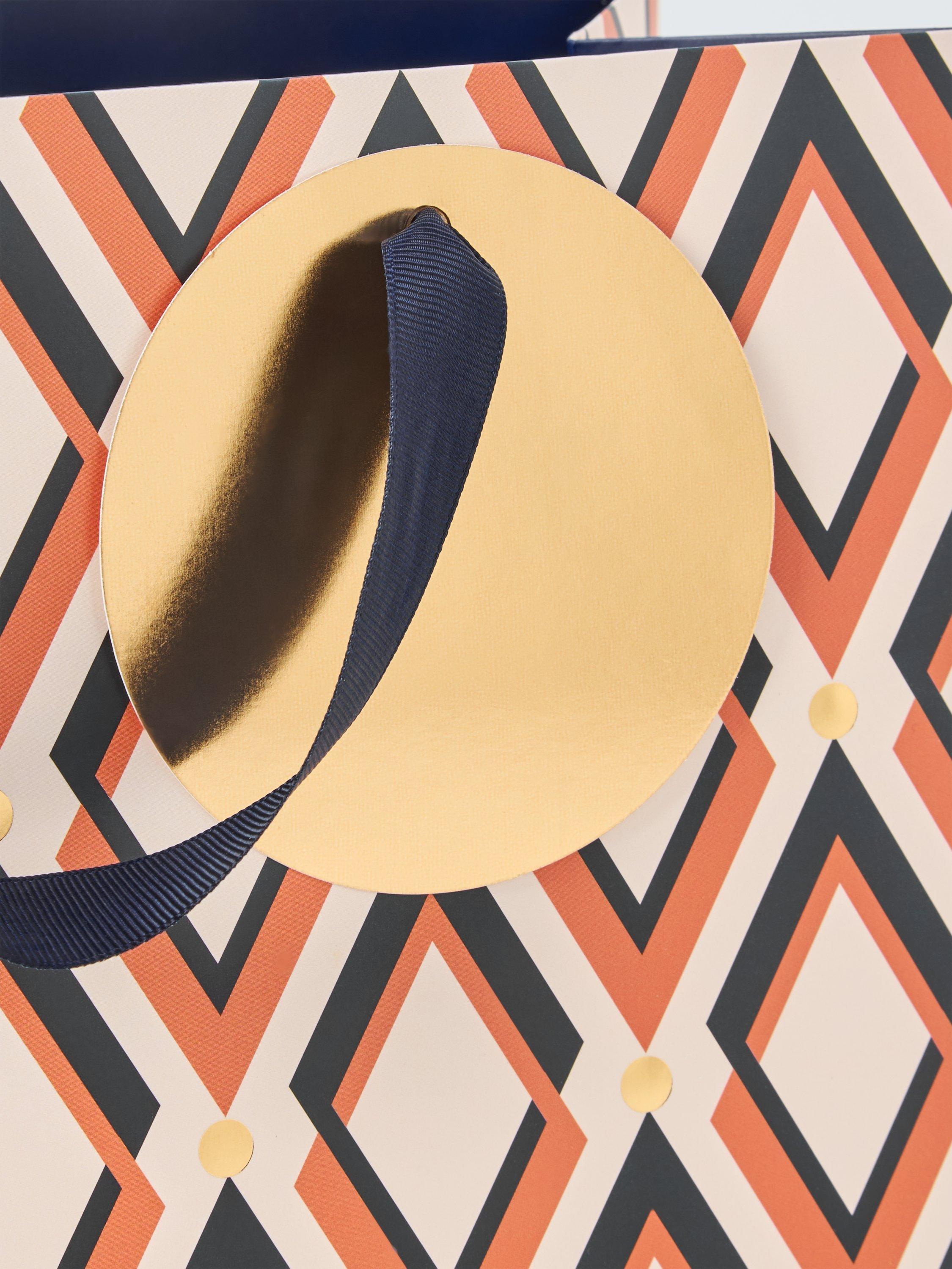 This gift bag comes with grosgrain ribbon handles and a matching gift tag.
