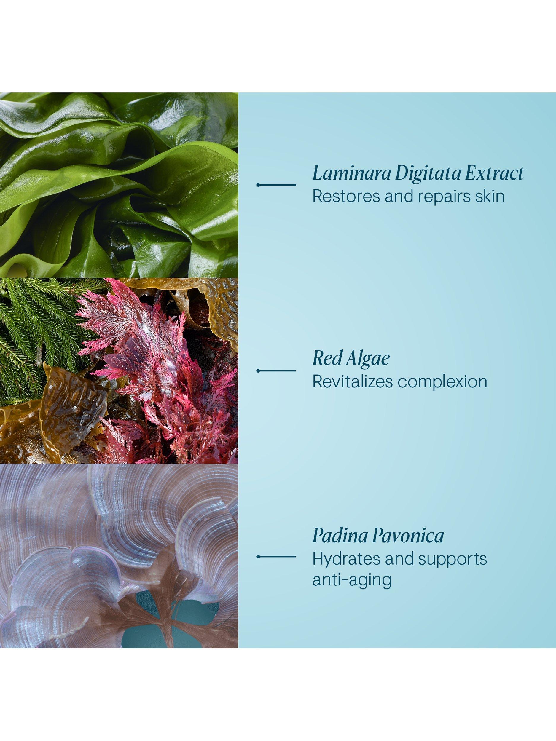 - Aqua/Water/Eau, Glyceryl Stearate SE, Glycerin, Isononyl Isononanoate, Ethylhexyl Palmitate, Butyrospermum Parkii (Shea) Butter, Lauryl Laurate, Ethyl Macadamiate, Propylene Glycol Dicaprylate/Dicaprate, Cetyl Alcohol, Phenoxyethanol, Sodium Polyacrylate, Potassium Cetyl Phosphate, Simmondsia Chinensis (Jojoba) Seed Oil, Oryza Sativa (Rice) Starch, Fragrance (Parfum), Butylene Glycol, Laminaria Digitata Extract, Chlorphenesin, Sesamum Indicum (Sesame) Oil Unsaponifiables, Triticum Vulgare (Wheat) Germ Oil Unsaponifiables, Persea Gratissima (Avocado) Oil, Phytosterols, Glyceryl Acrylate/Acrylic Acid Copolymer, Disodium EDTA, Sodium Dehydroacetate, Olea Europaea (Olive) Fruit Oil, Padina Pavonica Thallus Extract, Glyceryl Polyacrylate, Citronellol, Linalool, Collagen Amino Acids, Lithothamnion Calcareum Powder, Mimosa Tenuiflora Bark Extract, Mannitol, Leuconostoc/Radish Root Ferment Filtrate, Tocopherol, Sorbitan Oleate, Geraniol, Limonene, Hydroxycitronellal, Citric Acid, Malic Acid, Diatomaceous Earth, Tocopheryl Acetate, Ascorbyl Palmitate, Sodium Hydroxide, Zinc Sulfate, Hexapeptide-9