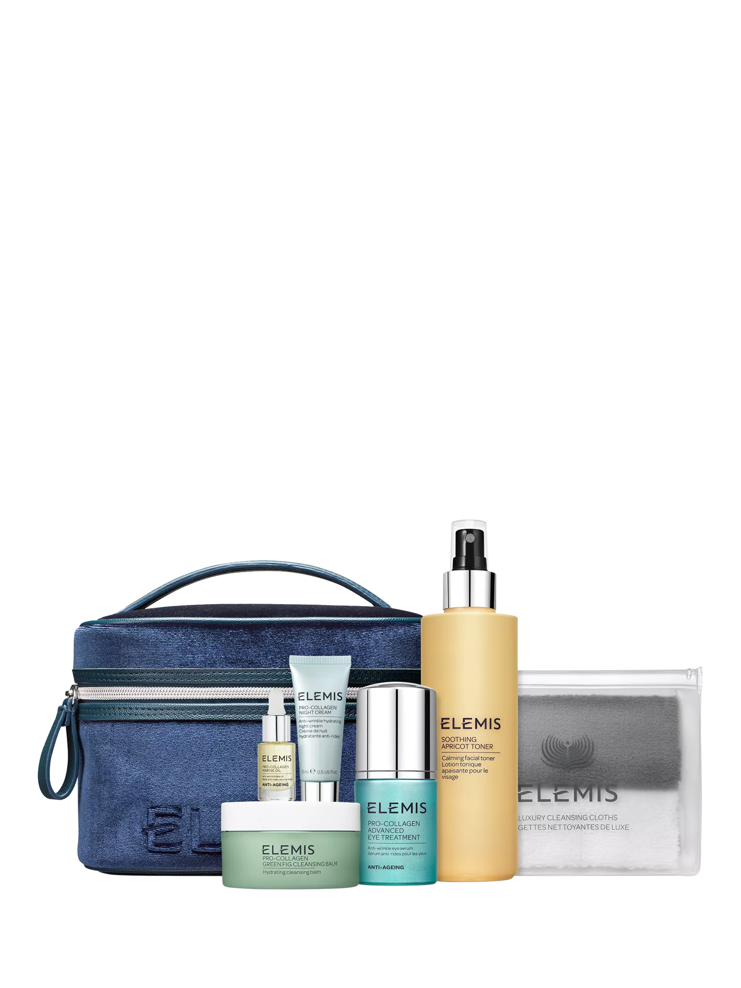 Layer hydration, starting with Soothing Apricot Toner and following with our lightweight, plumping Pro-Collagen Marine Oil. Soften and smooth the delicate skin around your eyes with Pro-Collagen Advanced Eye Treatment before completing your ritual by smoothing our firming Pro-Collagen Night Cream into your skin.