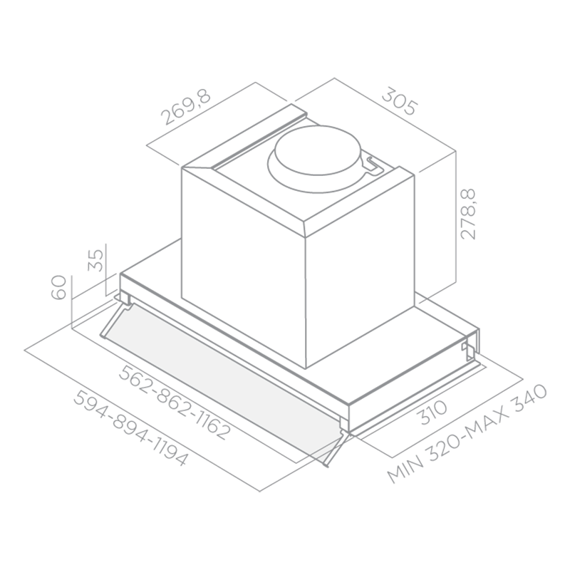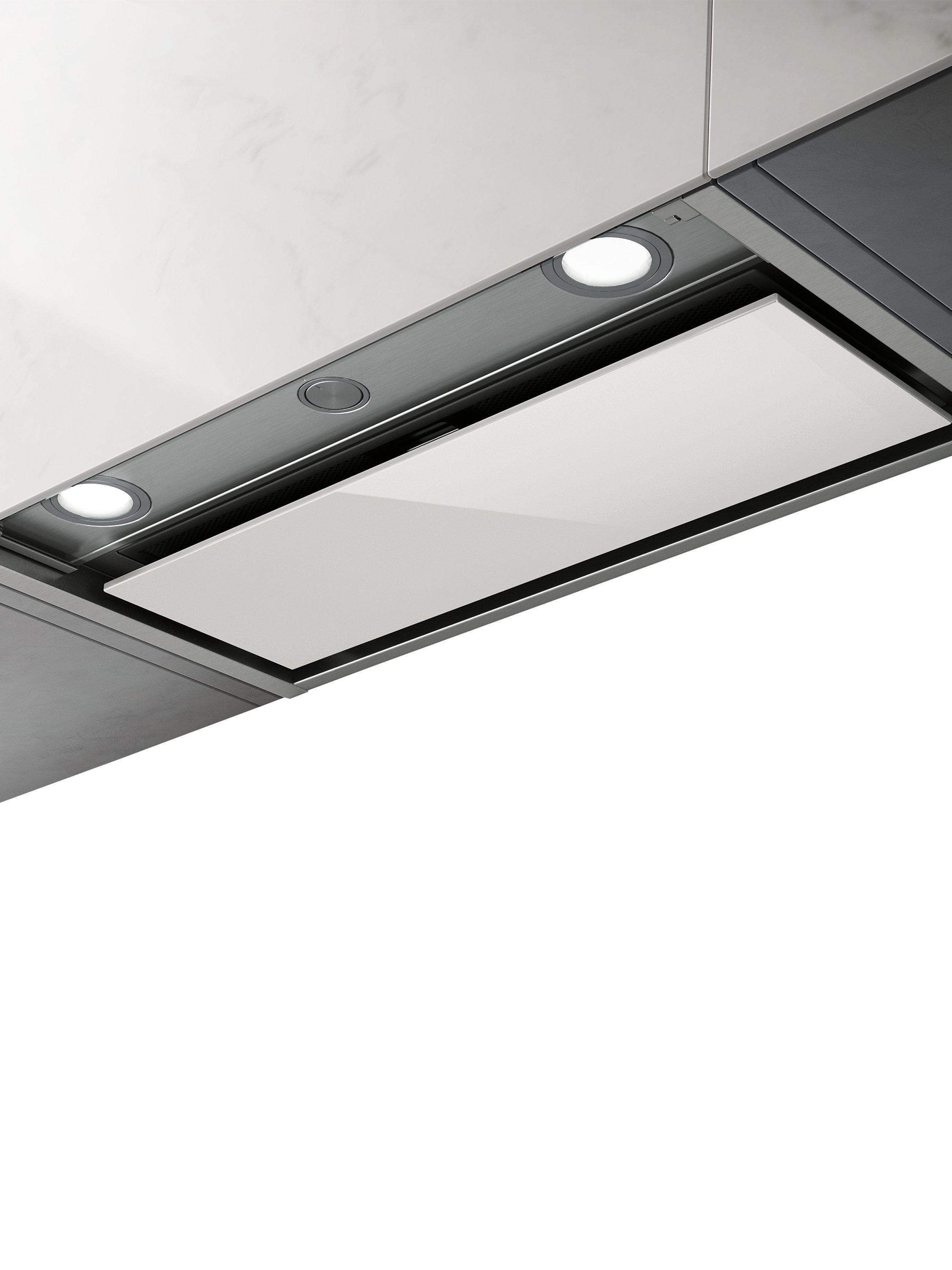 This elegant hood uses a high-performance motor to deliver 3 different stages of extraction, all of which can be easily selected using the push-pull controls. As for its design, the Boxin HE features effective LED lighting for a clear view of your dish, and glass panelling that protects the cabinet, even in lower installations.