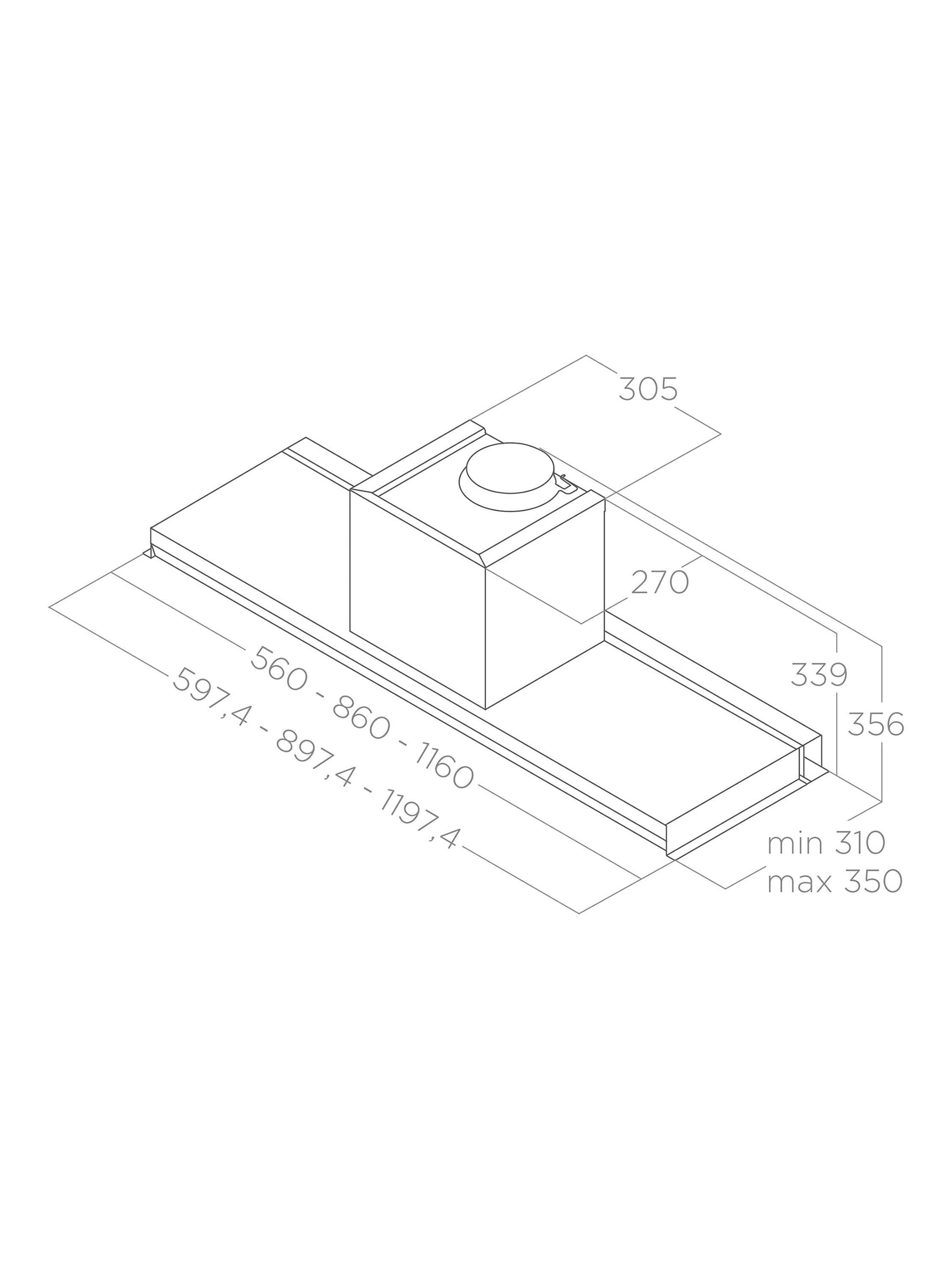H356 x W560 x D310mmMinimum distance between hob & cooker hood required