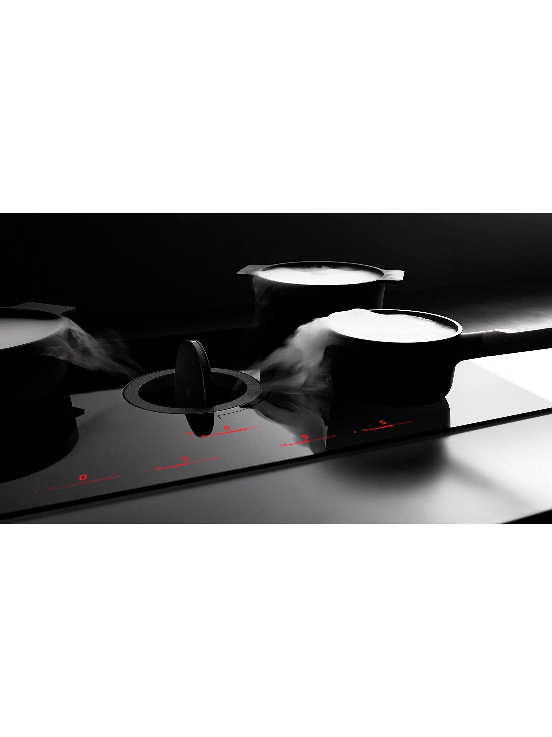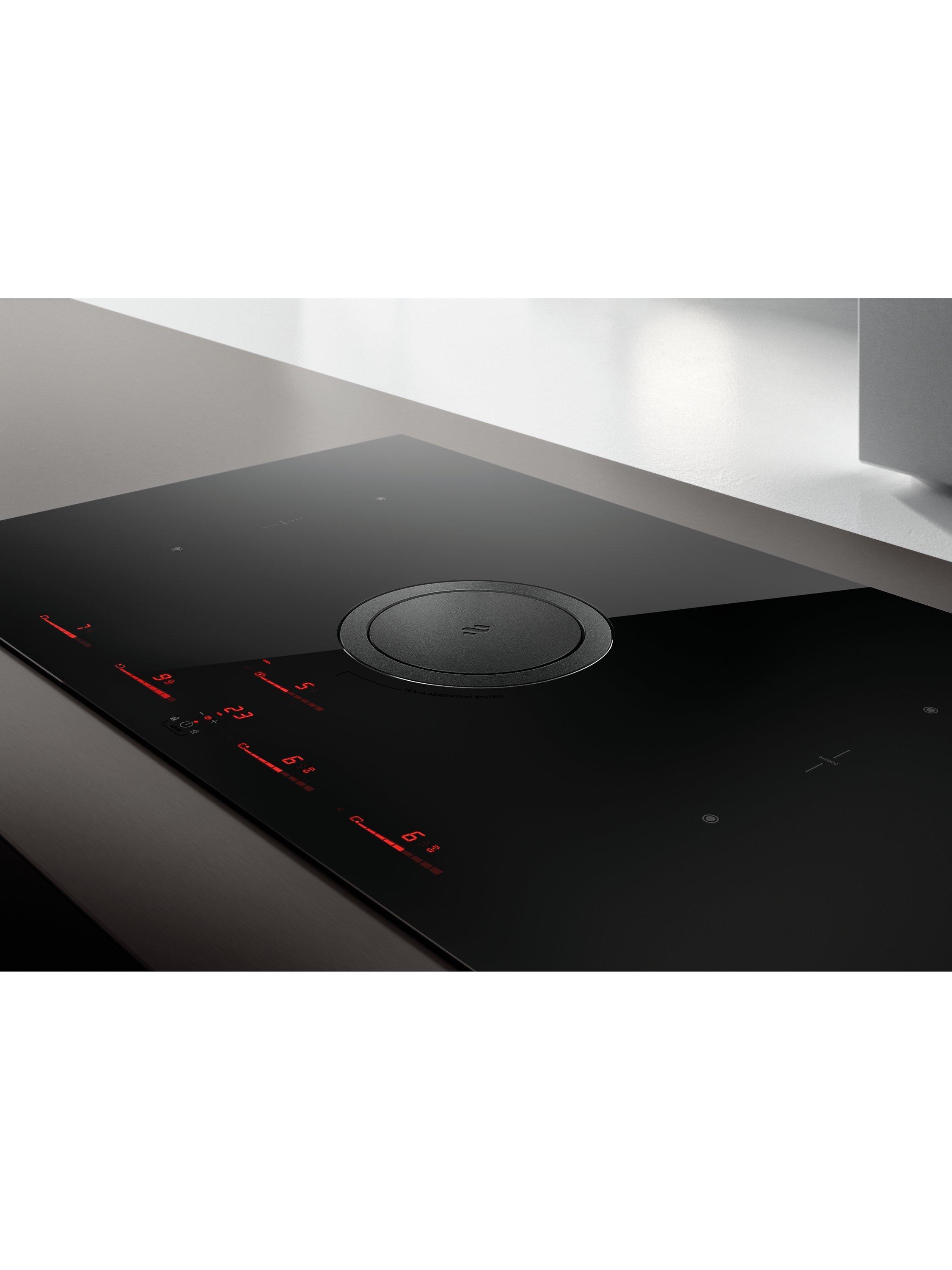The Nikola Tesla Switch combines an advanced induction hob with a central extraction fan for an odour-free cooking experience. Its black glass design makes it virtually invisible when set to stand-by mode.