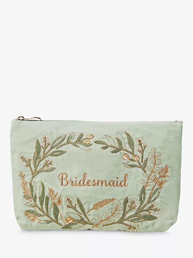 Complete with delicate embroidery and golden sentiments, this pretty cotton pouch makes the finishing flourish to your bridesmaid look.From hen-do to down the aisle, these thoughtful gifts are set to be treasured by those who mean the most. Designed to make your life a little more organised and a lot more luxurious, this timeless pouch features delicate embroidery on a soft, durable base. Ideally sized, it's perfect for storing your daily essentials, fitting in your handbag, or using as a clutch.