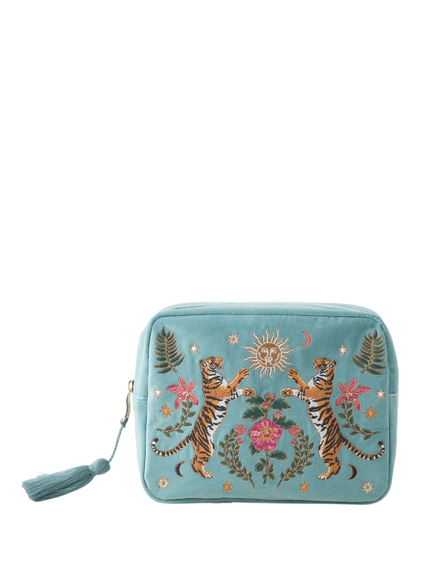 Mystical and mesmerising, this design honours one of the jungle’s most majestic big cats. With tropical threads, flourishes of foliage and intricate embroidered details - whether given as a gift or used to store your beauty must-haves, it’s sure to add wild wonder to the everyday.