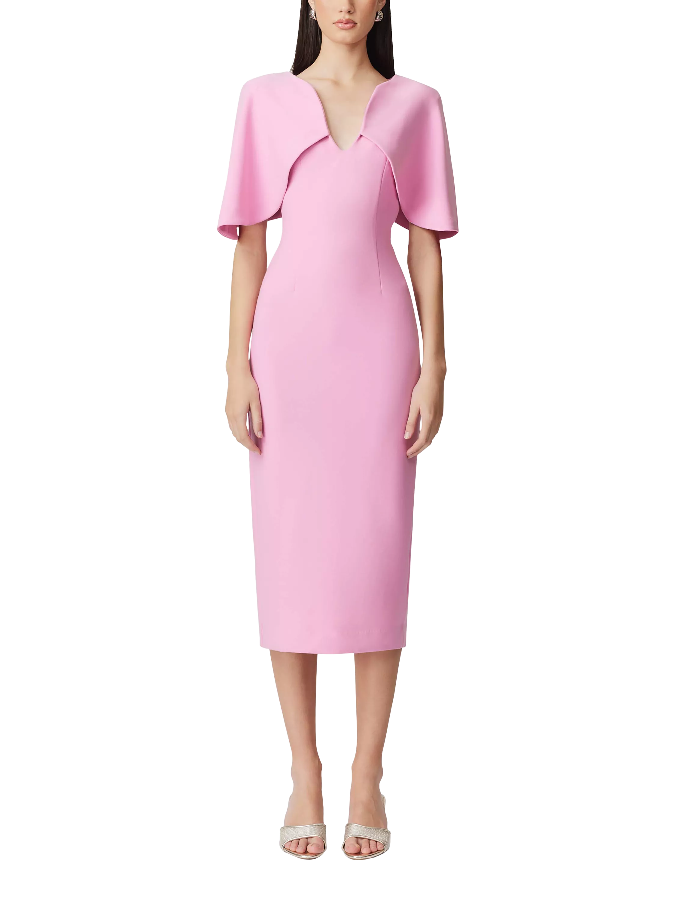 Carved out to a stunning straight shape with waist panelling, this mid-length dress from Elliatt comes in a soft stretchy fabric. With a curved plunge v-neckline and cape sleeves, it's stunning formal wear style.