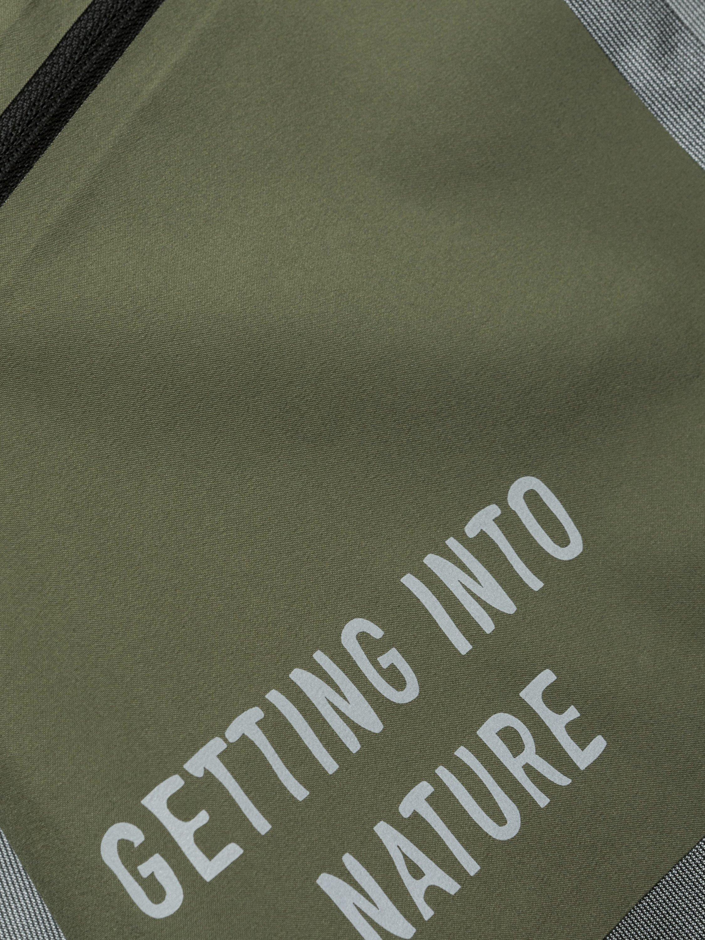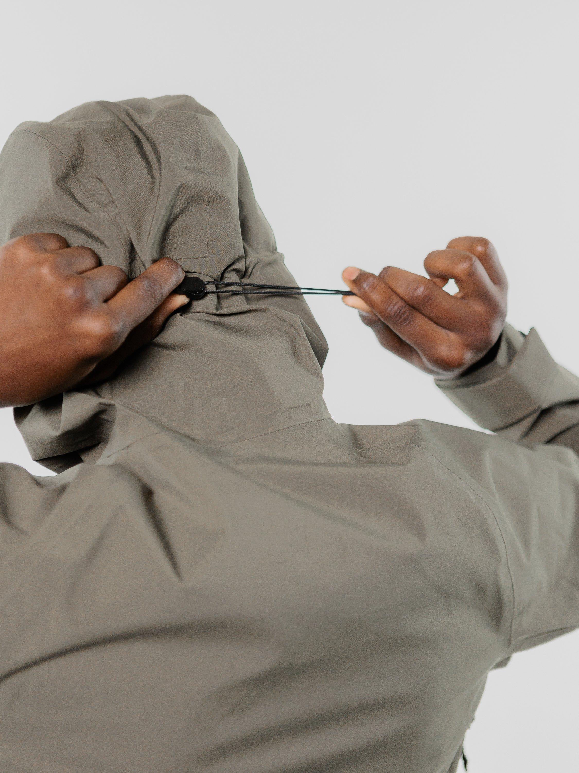 This Shell jacket is a confident and innovative choice for any weather. It's crafted from a durable, lightweight, and sustainable three-layer fabric that offers protection from wind and rain. The fabric is made from a blend of virgin and recycled polyester, with a high waterproof rating of 10,000mm and a breathability rating of 10,000g/m2. The jacket also features taped seams to keep water out.