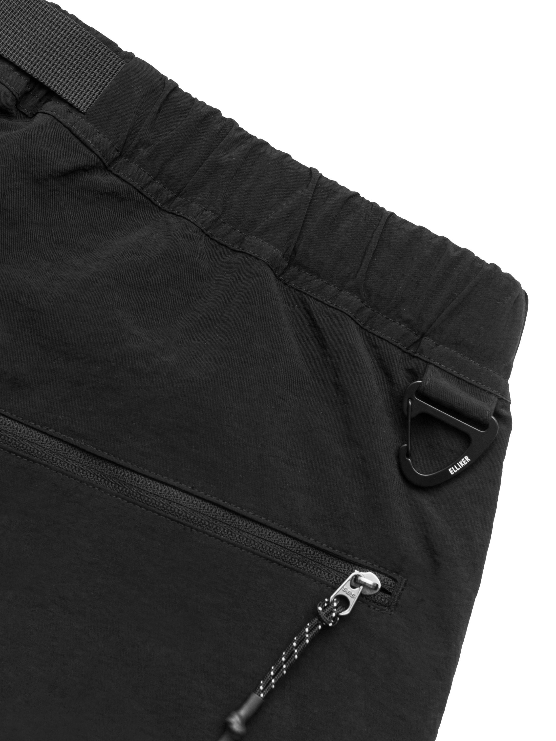 Designed for adaptability in the outdoors, the Thrin Cargo Tech Trousers combine lightweight performance with functional detailing. Crafted from 100% recycled nylon with a durable water-repellent finish, they offer protection against the elements without compromising breathability. A relaxed fit and articulated construction provide unrestricted movement, making them ideal for dynamic pursuits. The built-in adjustable belt with a G-Clip fastening ensures a secure and comfortable fit, while the button and zip crotch opening enhances ease of wear. Two front zip pockets and a rear zip pocket keep essentials within reach, and adjustable ankle pullers allow for a customisable fit. Finished with an ELLIKER carabiner clip, these trousers are a versatile staple for exploration, whether you're navigating city streets or venturing off-grid.