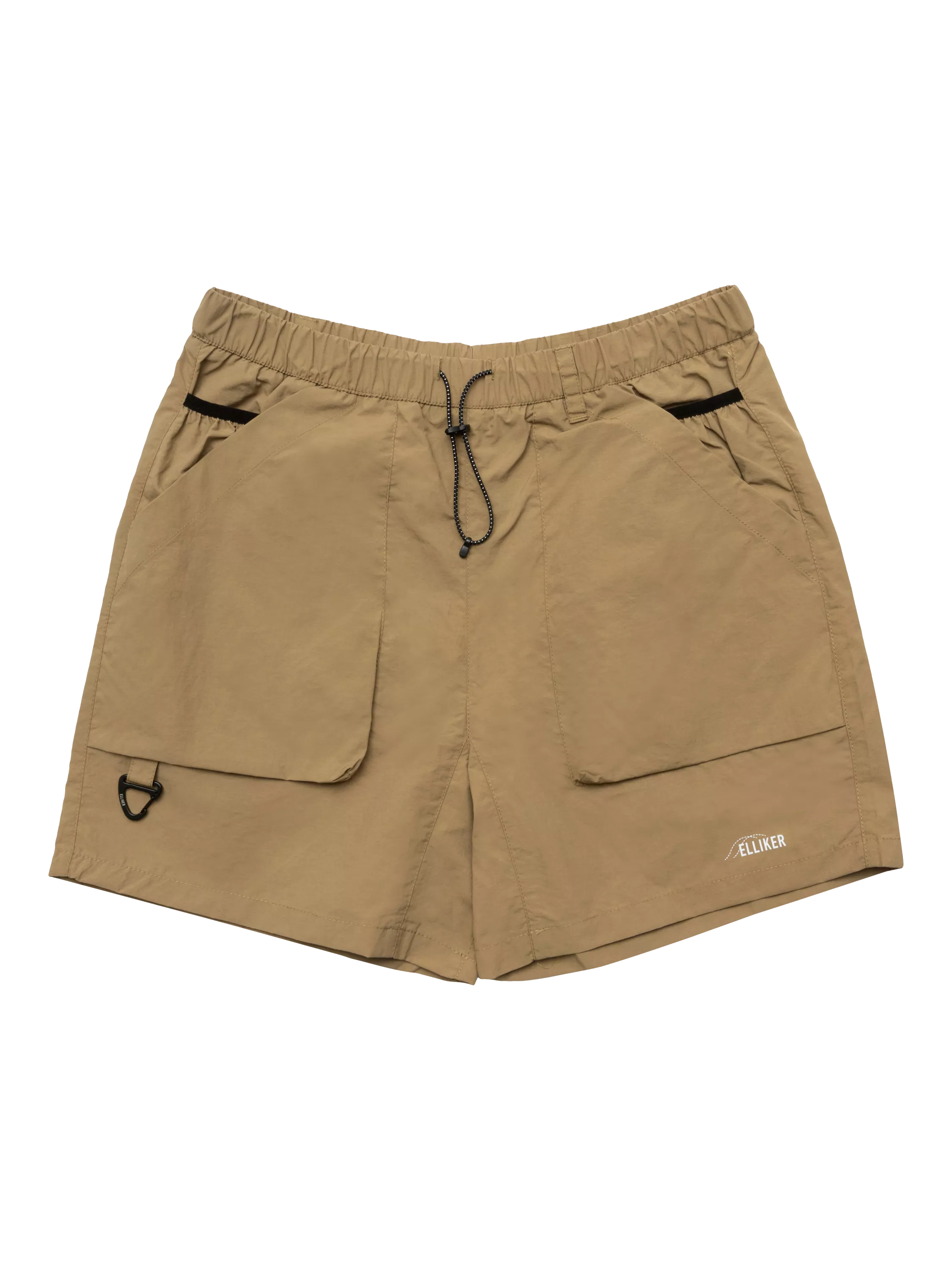 A versatile staple for outdoor exploration, the Sayer Tech Shorts are built for utility and designed for movement. Made from 100% recycled nylon with a durable water-repellent finish, they offer resilience against the elements while maintaining breathability. The relaxed fit, stretchable waistband, and built-in adjustable elastic cord ensure all-day comfort and flexibility. Multiple storage options include dual front pockets with integrated phone compartments, two rear pockets, and an integrated carabiner clip for quick access to essentials. The Sayer Tech Shorts are a balance of function and performance, ready for city streets and nature trails.