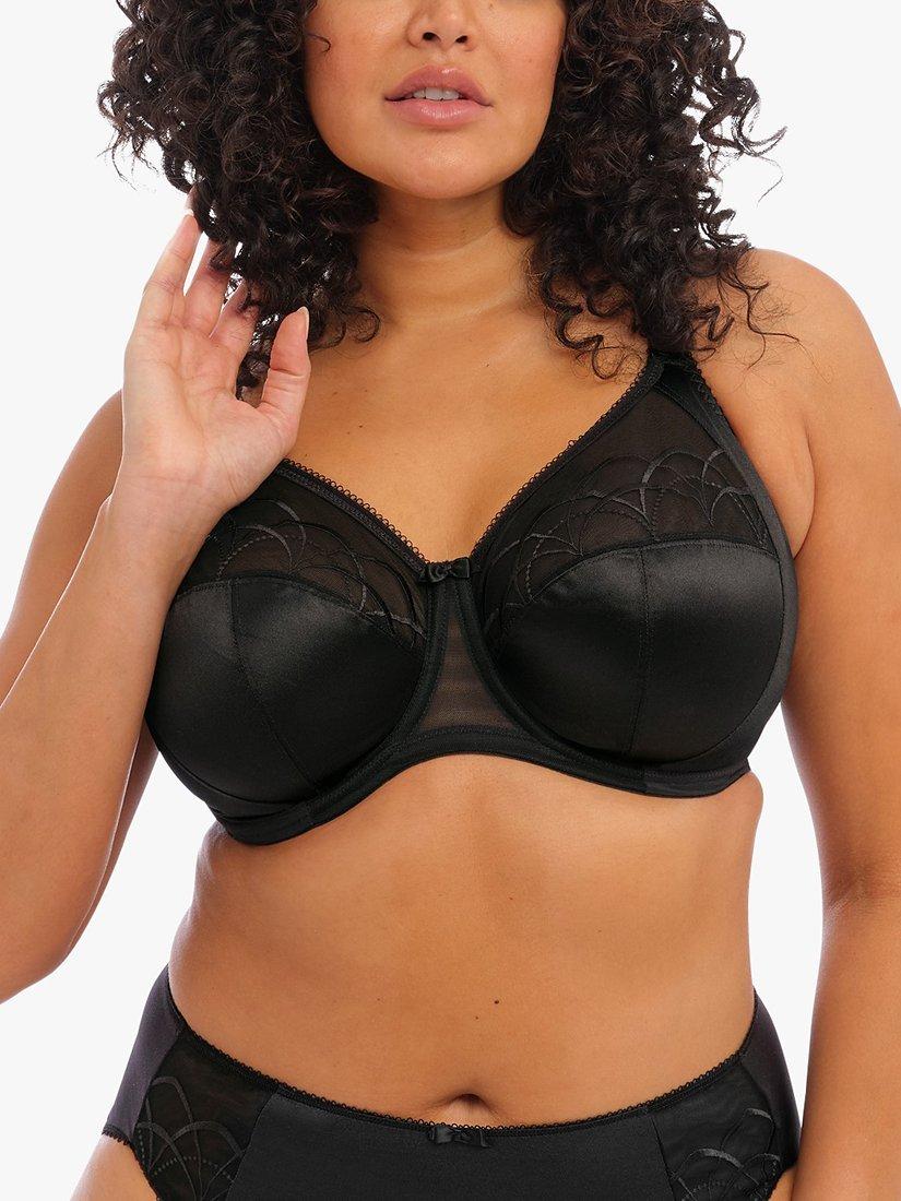 Elomi's best-selling full cup bra features a side support panel for forward shaping, uplift and separation. Sheer top cup with stylish arc design embroidery and special flattened finish to minimise show-through as well as an elasticated neck-edge for ease of fit. The powernet wing provides anchorage and support. Complete with bow detail at centre front and apex.