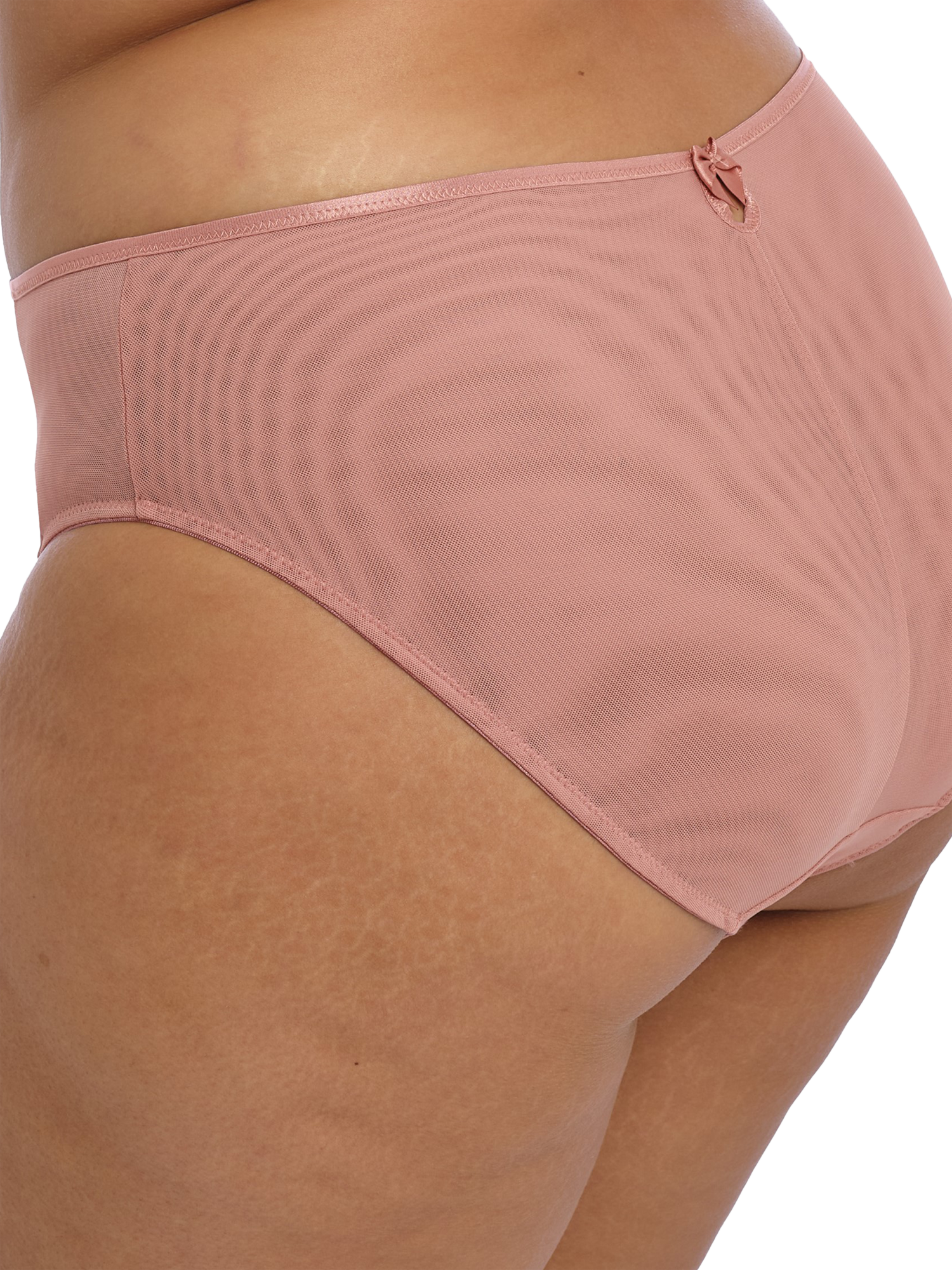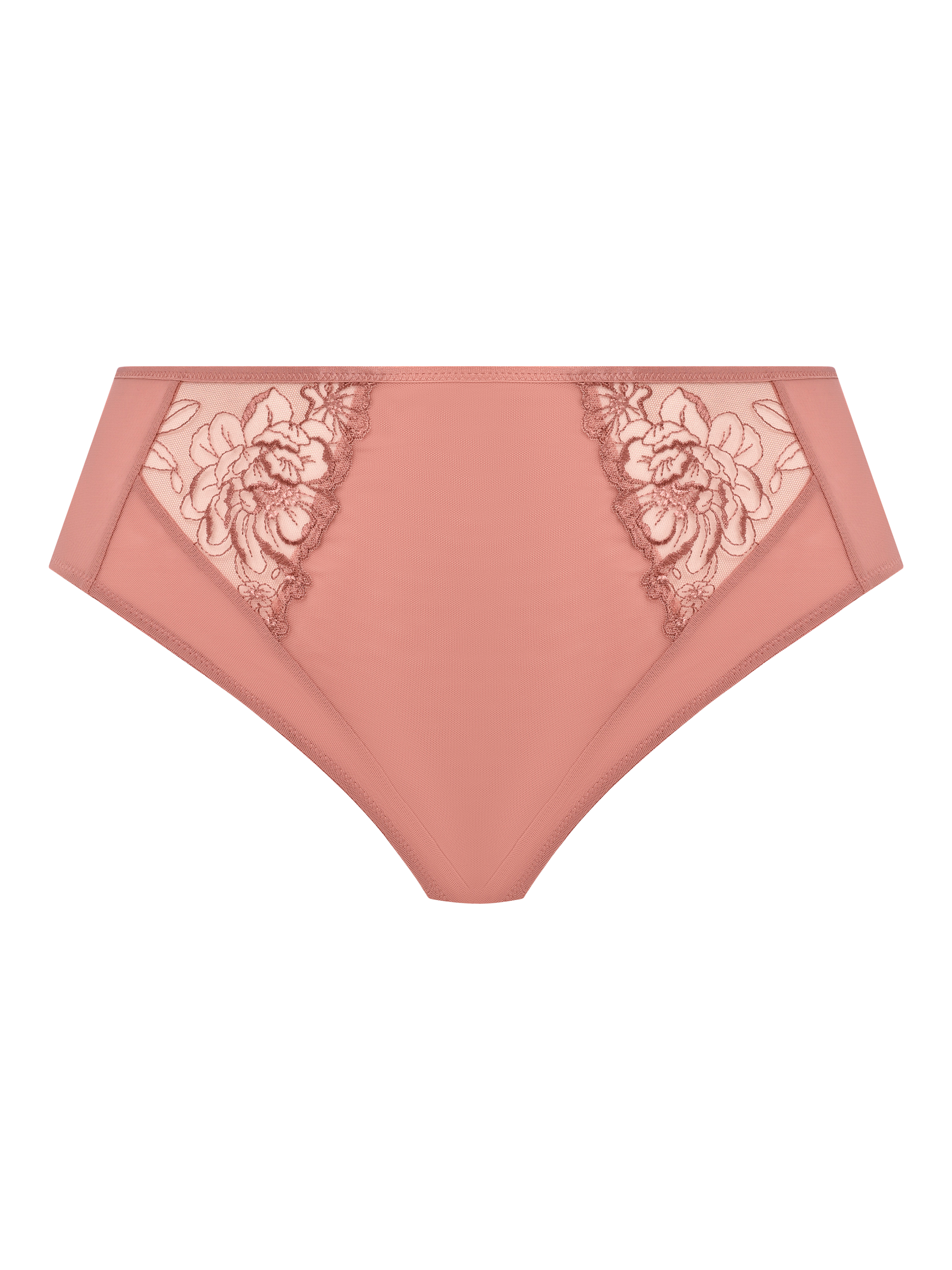 The High Leg Brief has double layered stretch mesh front, sides and back for modesty plus precision printed embroidered front inset panels, with soft metallic yarn detailing. Smooth satin-look waist elastic holds the knickers in place.