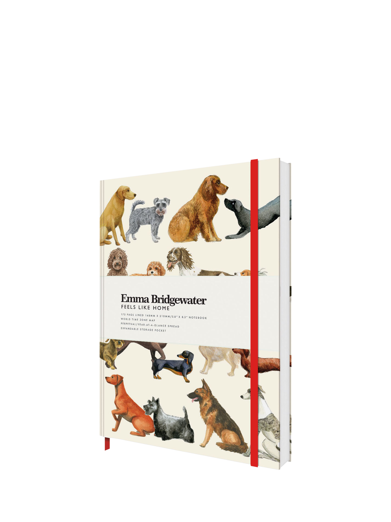 A beautiful Dogs cover design from Emma Bridgewater decorates this A5 lined notebook. In addition to 175 pages, the notebook offers a year-at-a-glance spread and an expandable storage pocket and is free of plastic packaging.