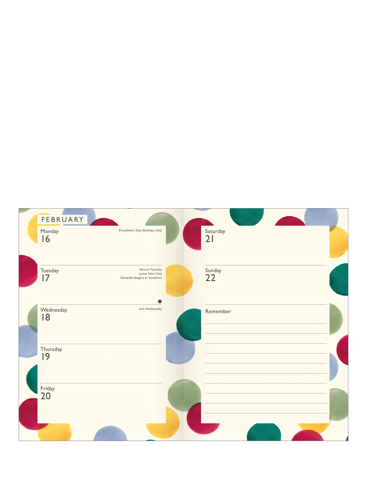 Emma BridgewaterA6 Big Polka Dot 2026 Diary, Multi
