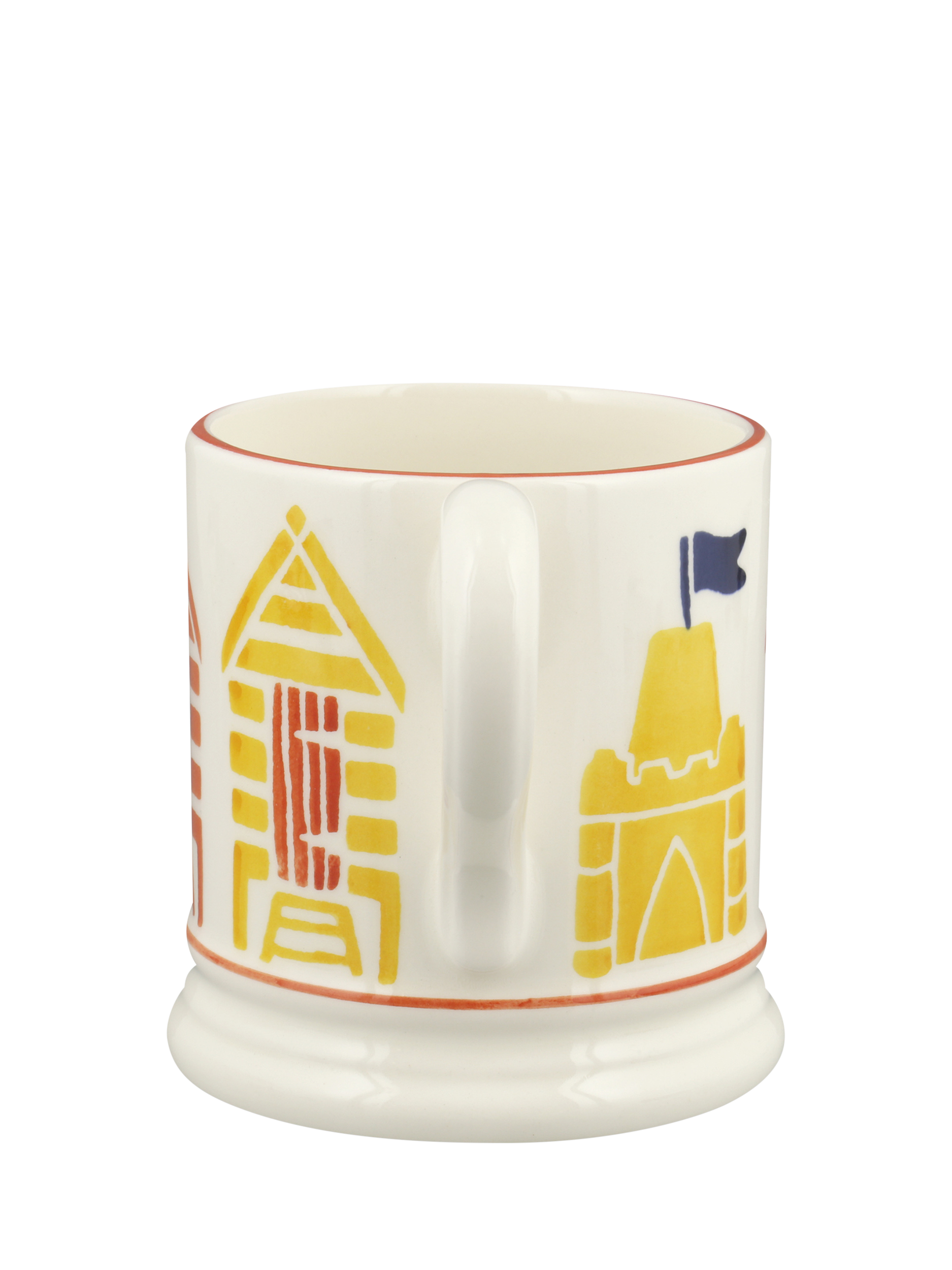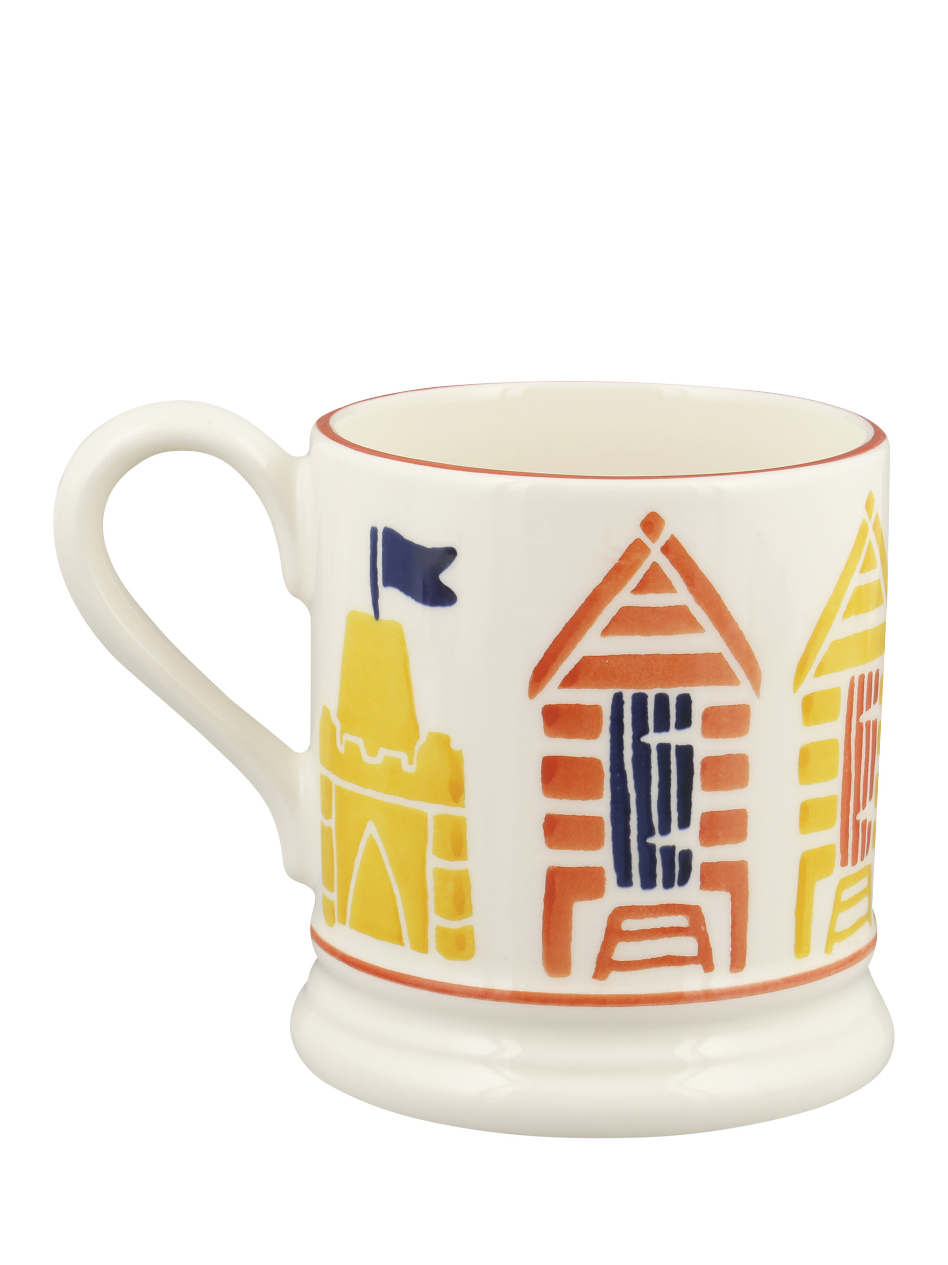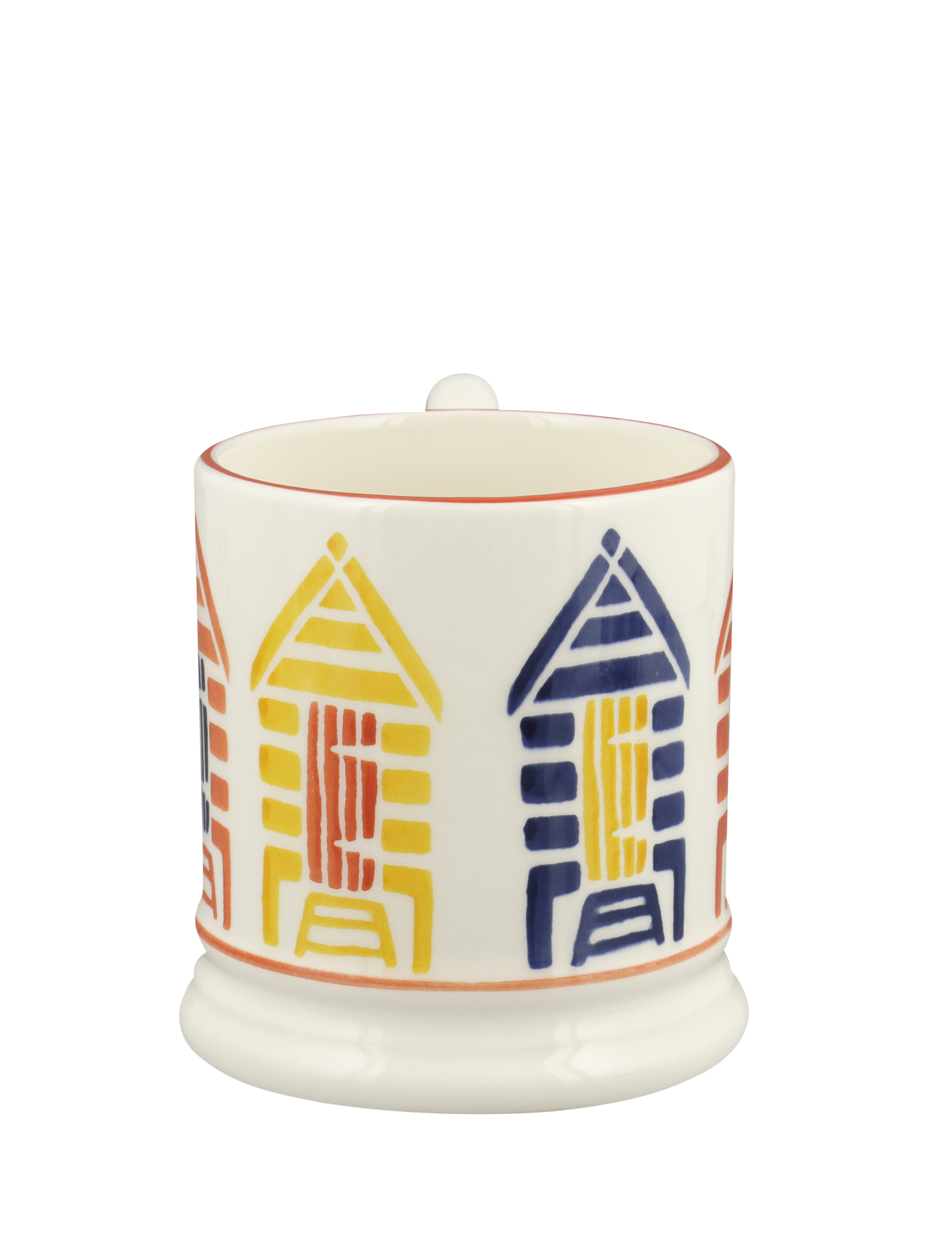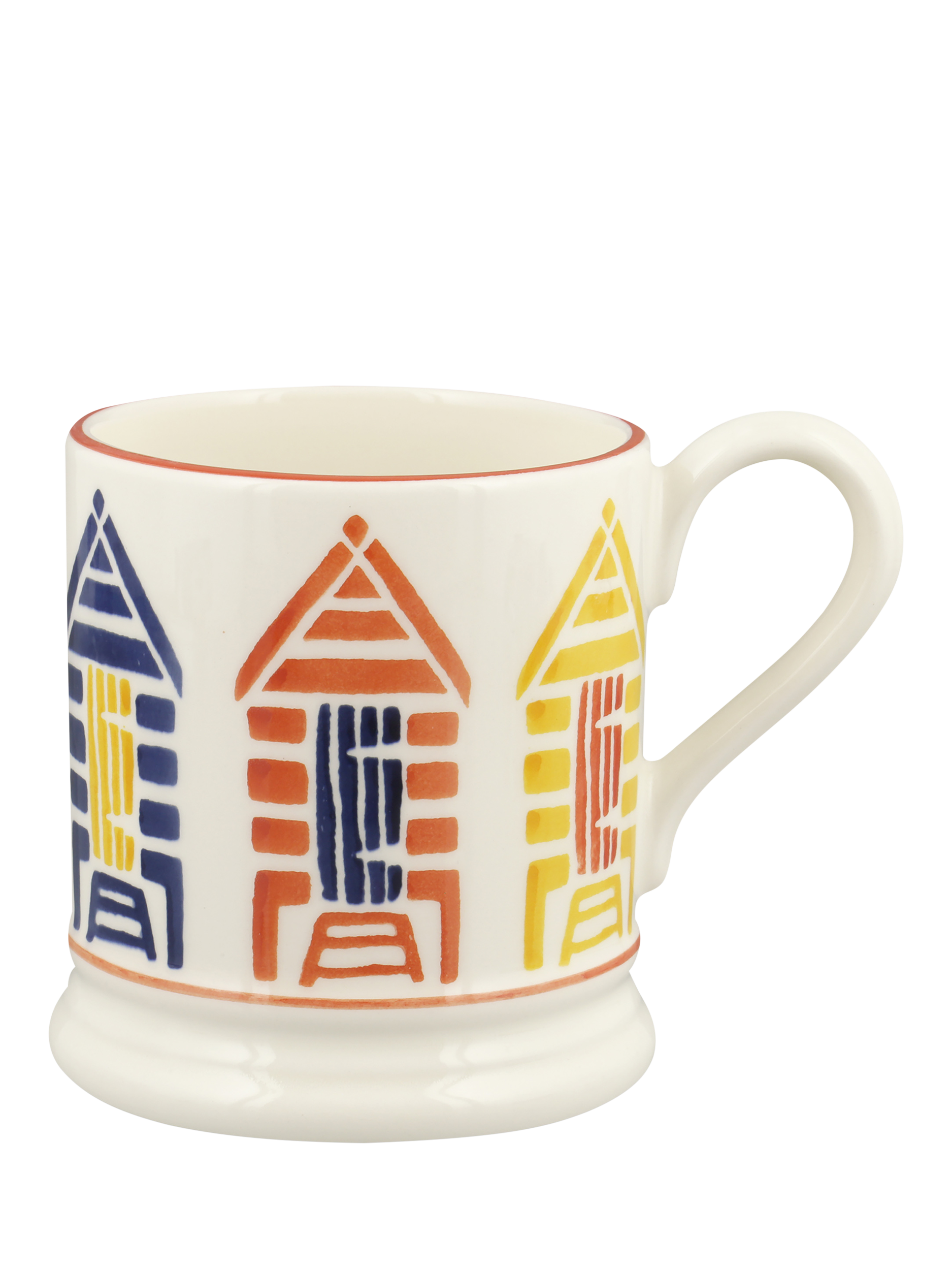 A colourful feature of British coastlines, beach huts feature on this Emma Bridgewater half-pint mug.