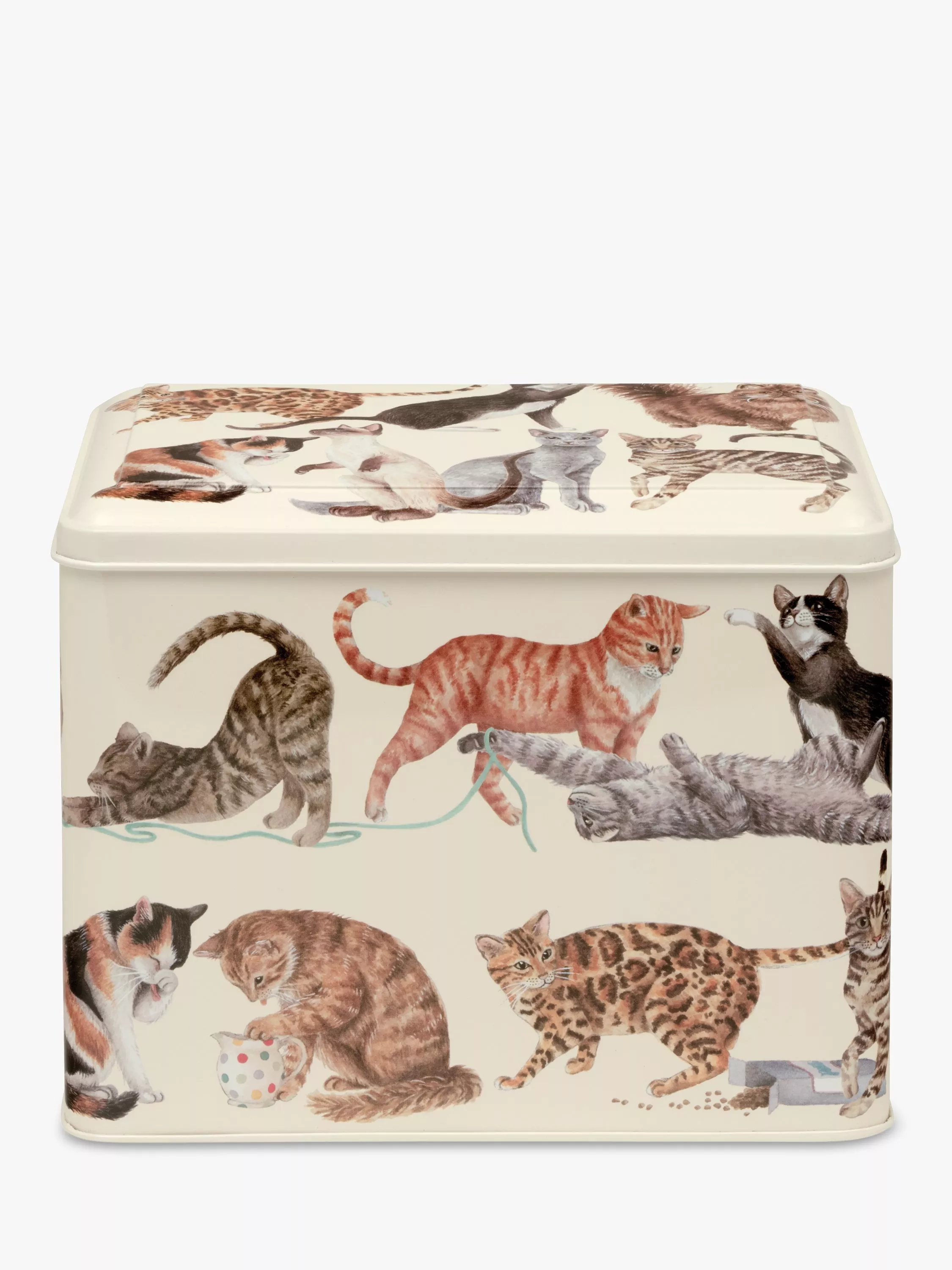Keep the squeaking mouse, crinkle ball and catnip toy firmly out of your kitten's reach at night with this Emma Bridgwater printed tin. The Cats Rectangular Caddy is great for treats too.