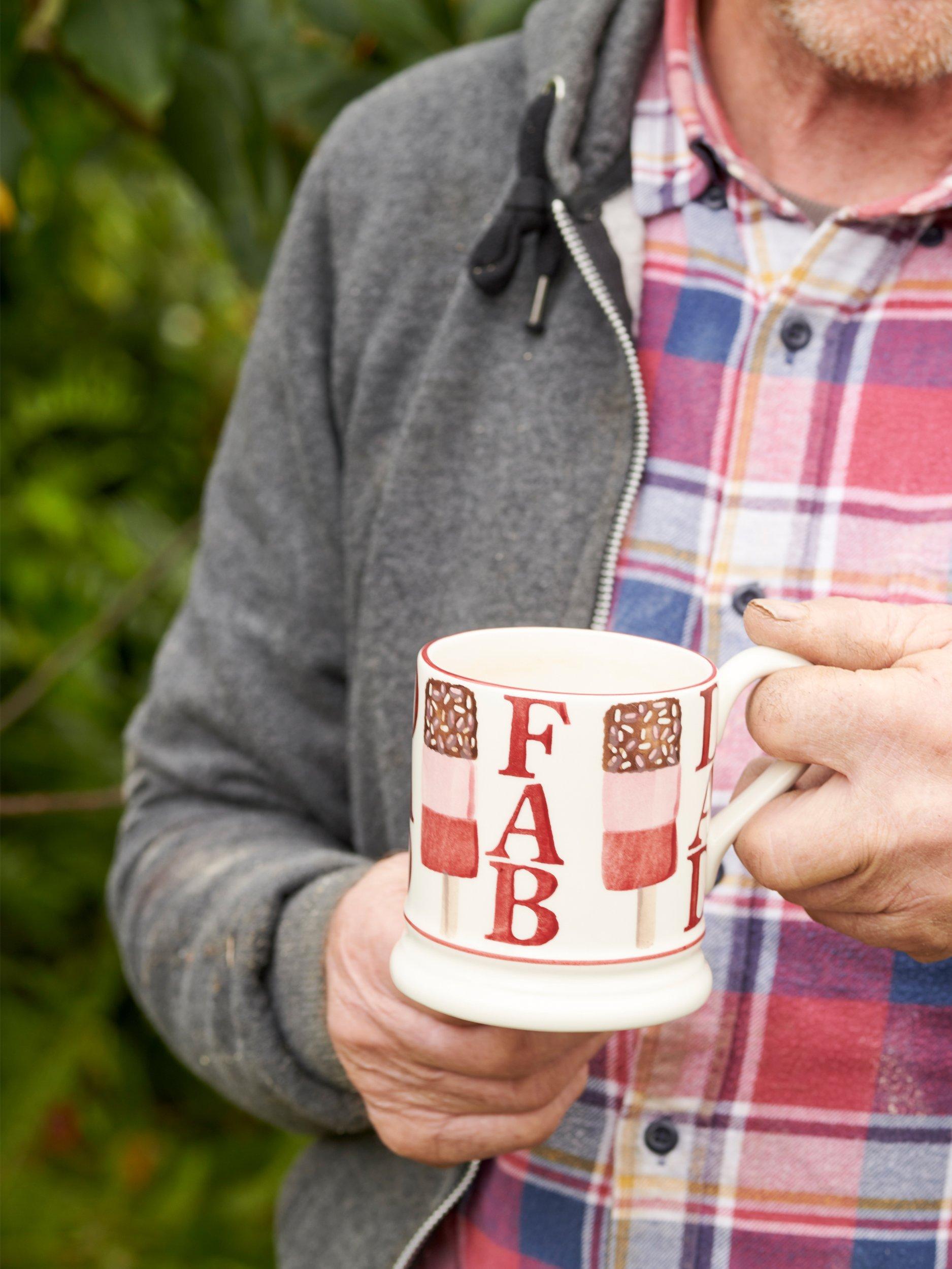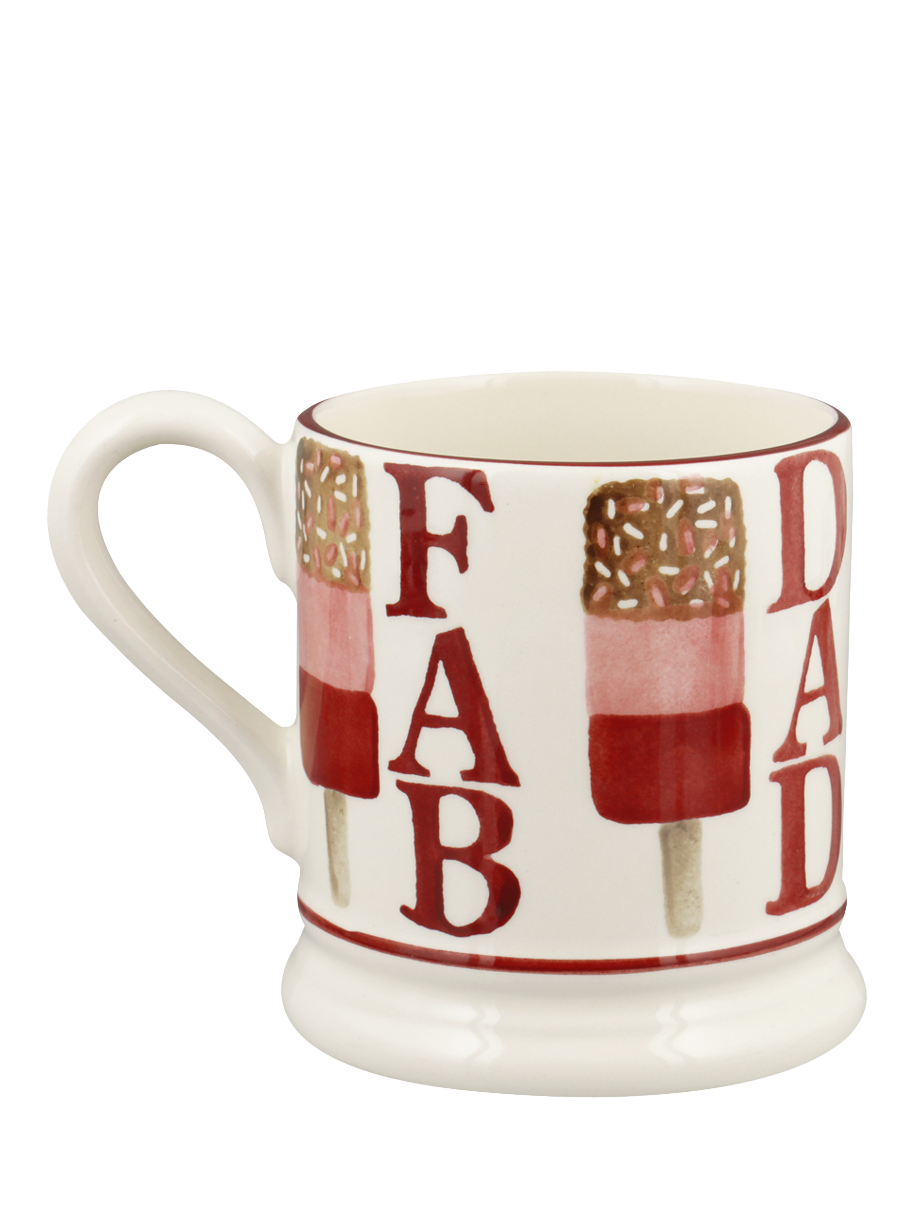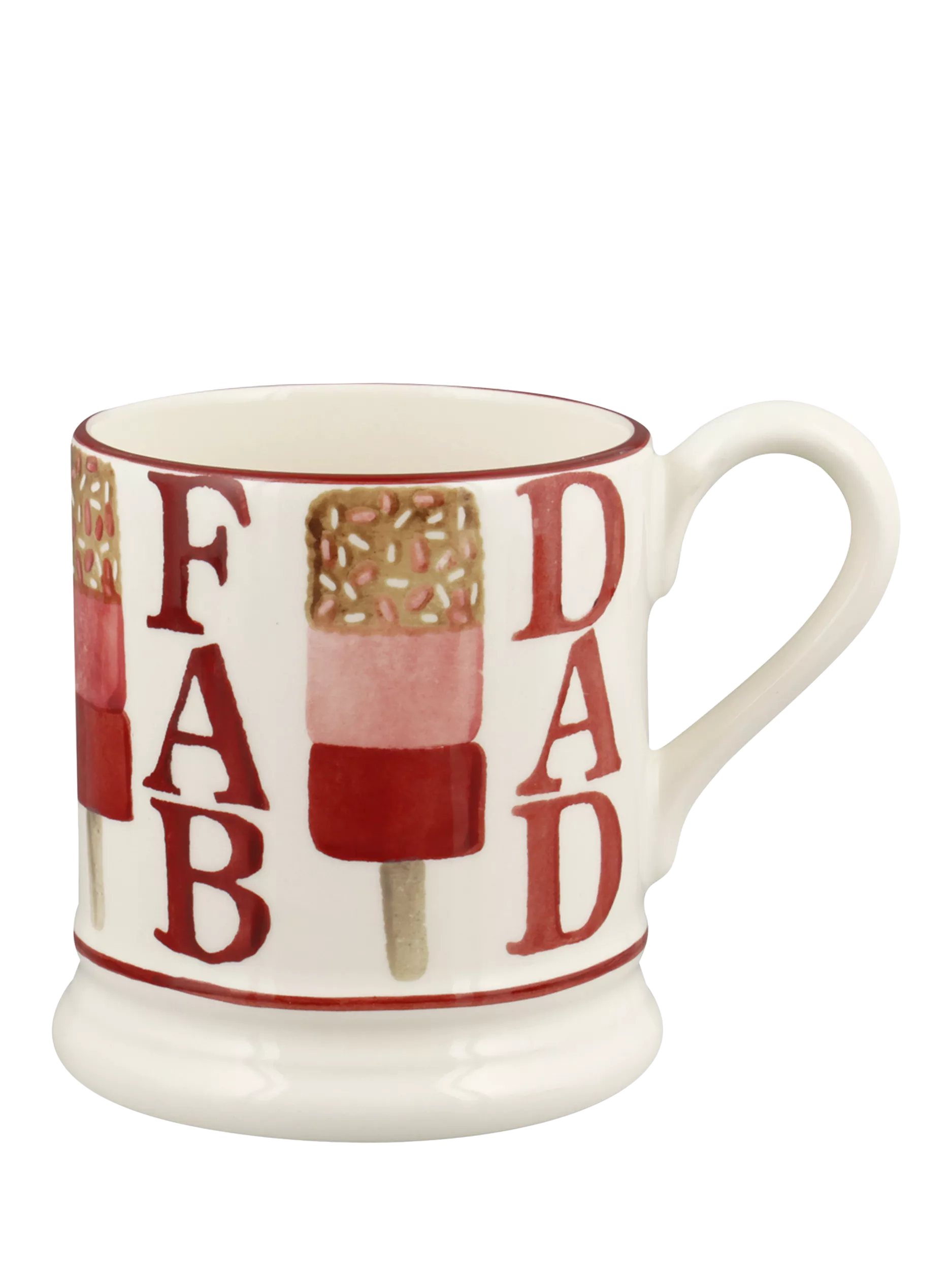 A 'Fab' ice cream-inspired mug, with sprinkles on top. Handmade and hand-decorated, this sweet design celebrates Dad.