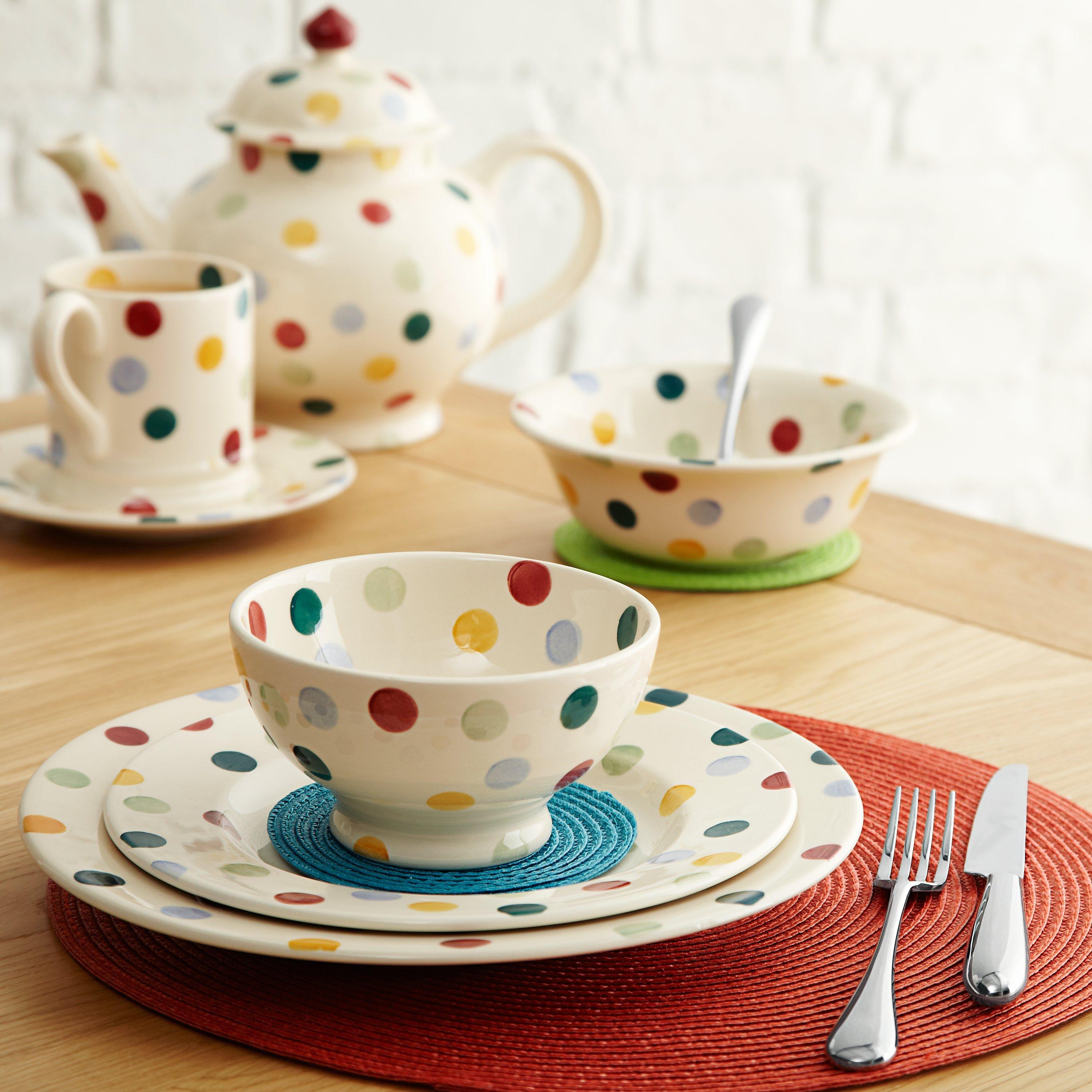 Add a touch of quintessential English charm to your kitchen with this colourful plate from Emma Bridgewater featuring handpainted polka dots. Perfect for everyday dining or entertaining guests.