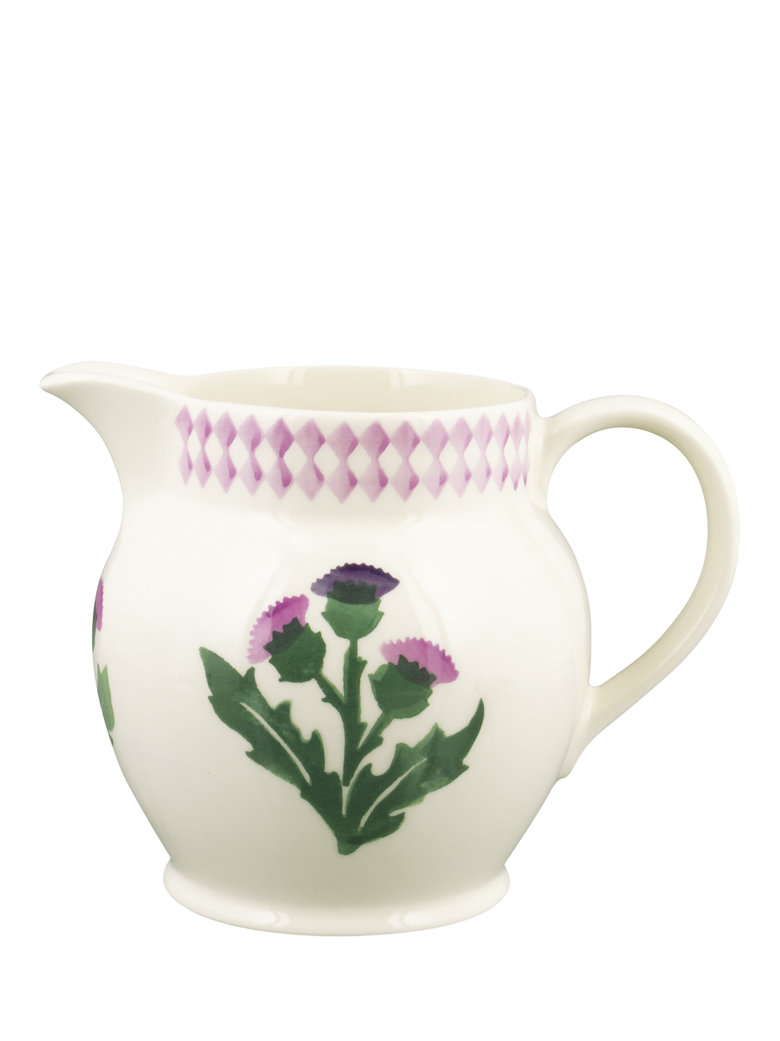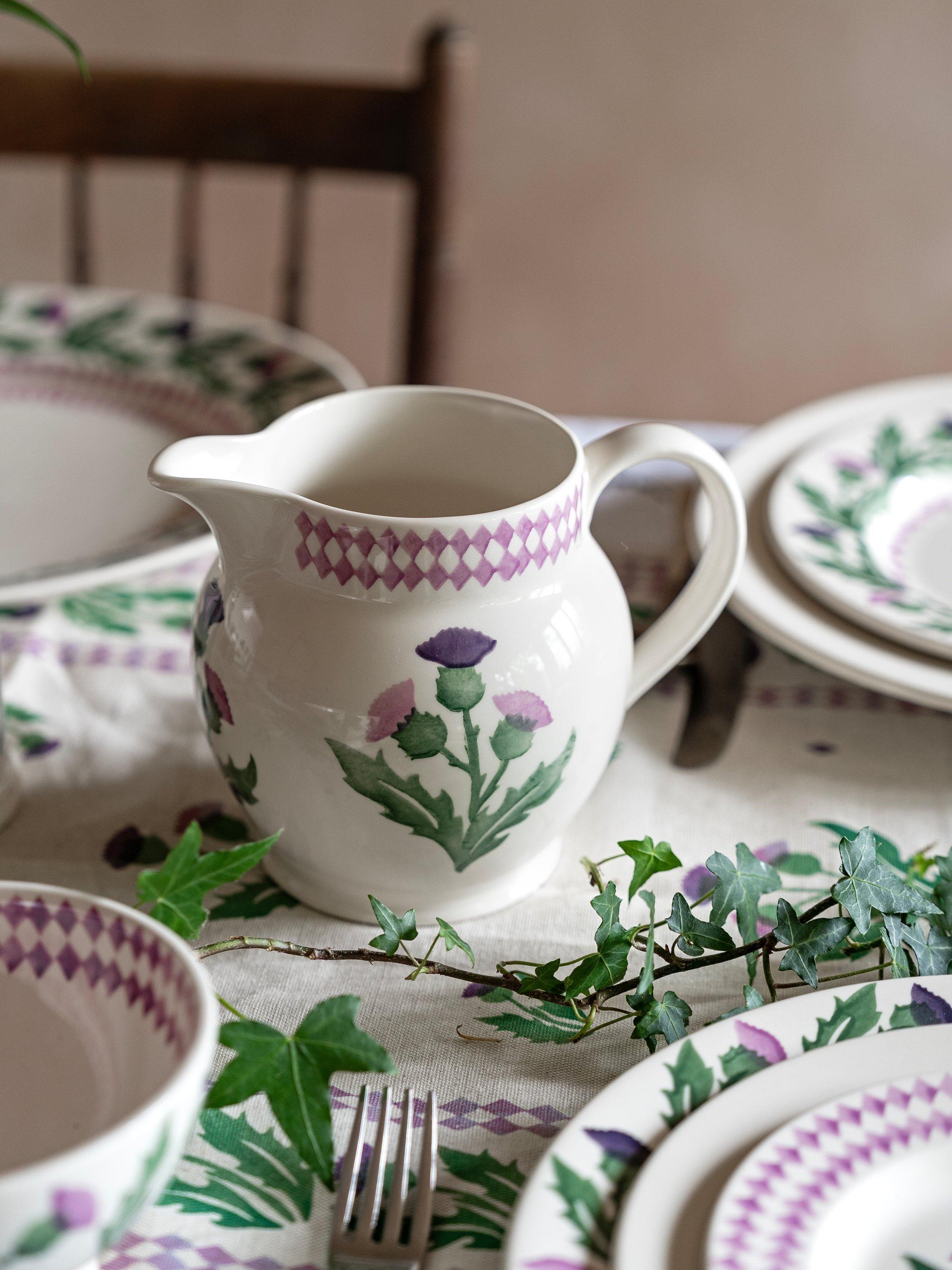 An ideal vessel for dining table drinks, or use this jug as a vase for flowers cut straight from the garden. The thistle pattern is reminiscent of flora in the Scottish Highlands. It's inspired by patterns created in a shop Emma Bridgewater once had in New Town, Edinburgh.