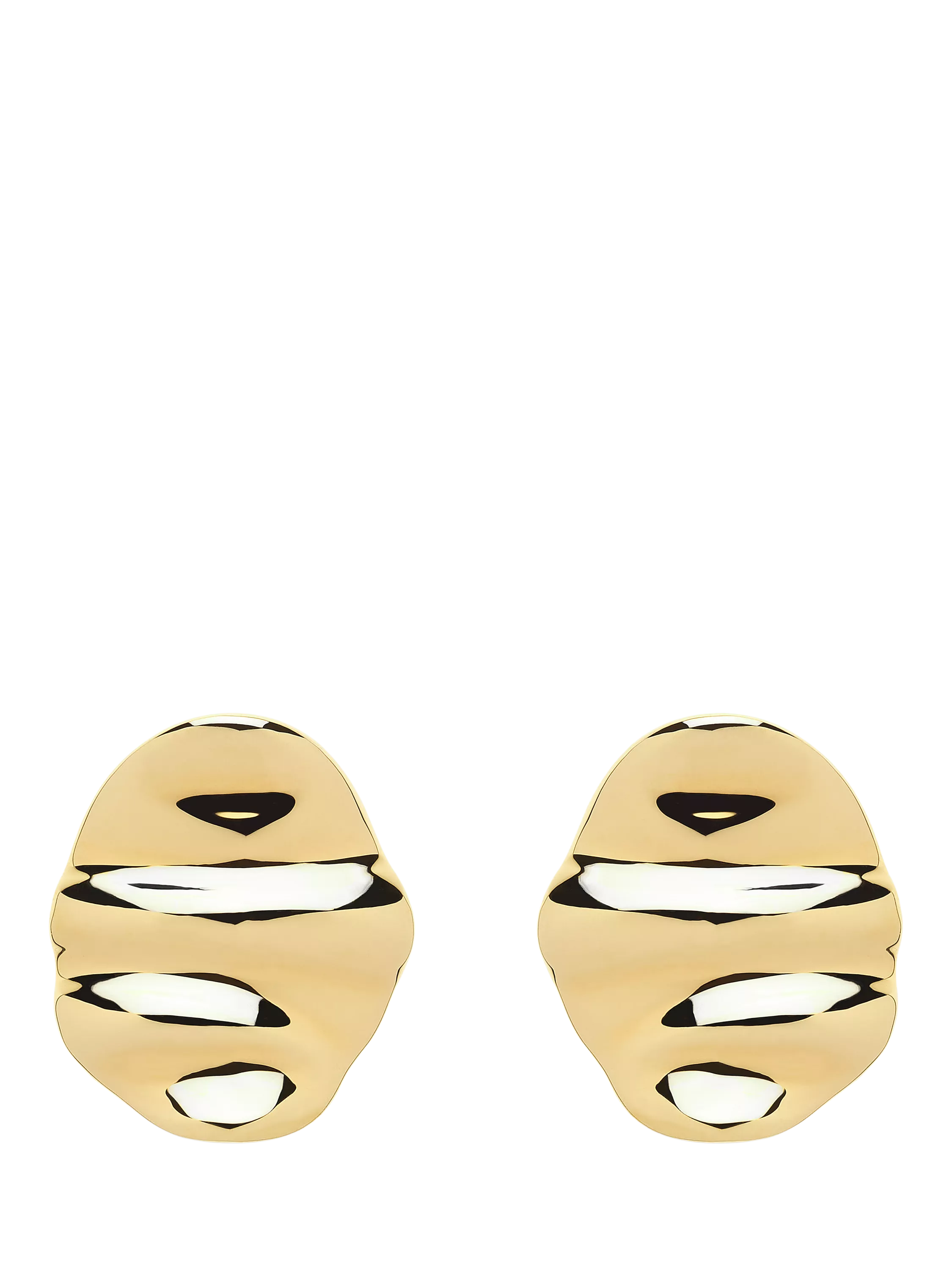 Designed with comfort in mind, these earrings feature soft silicone backs that ensure a secure and gentle fit. Lightweight yet striking, they can be worn all day without discomfort, making them ideal for work, social events or special occasions. The rippled gold plating catches the light beautifully, offering a modern twist on a timeless design.