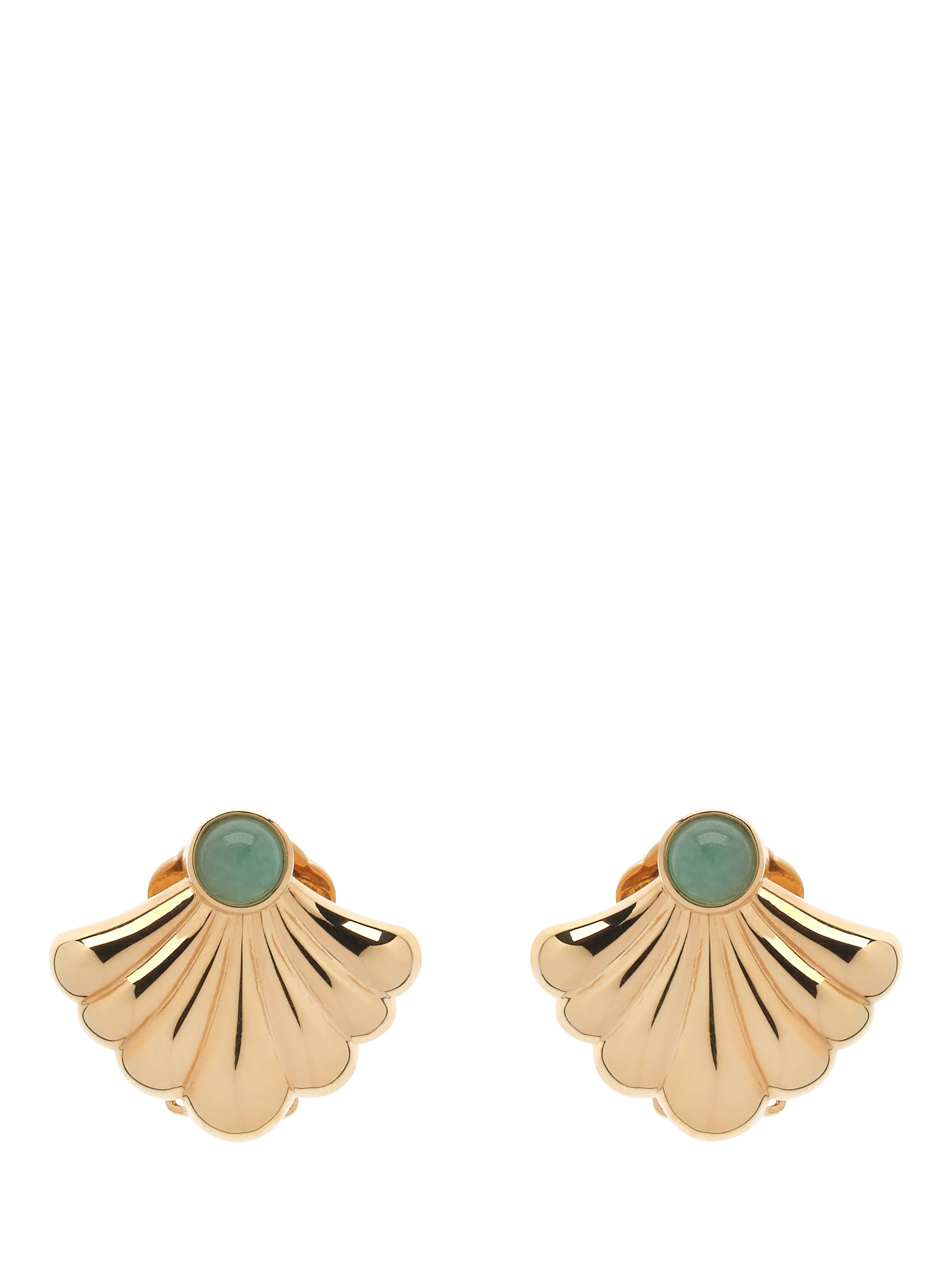 Crafted in 24ct gold plating, these vintage-inspired clip-on earrings showcase a classic shell shape with a semi-precious stone in the centre, offering a timeless and sophisticated finish to your outfit.