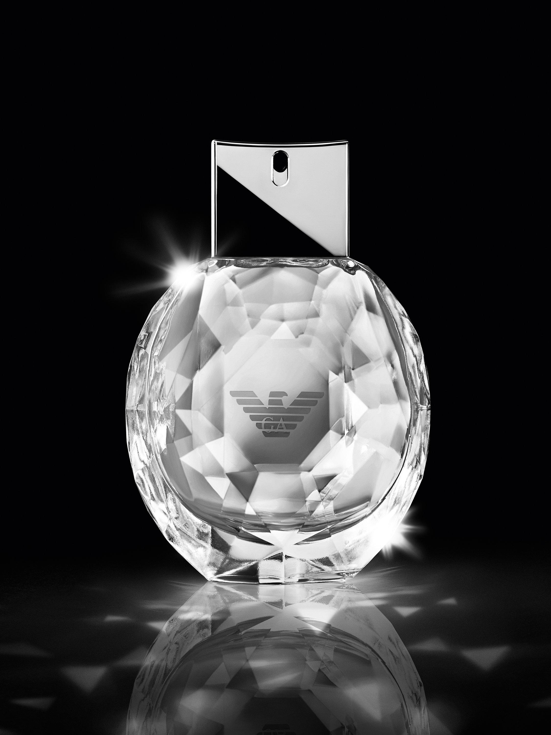 The precious scent is encased in a sculpted, sparkling block of glimmering glass. Engraved at its centre, the unmistakable Emporio Armani eagle. A diamond in your palm, accessible, immediate, truly a girl’s best friend.