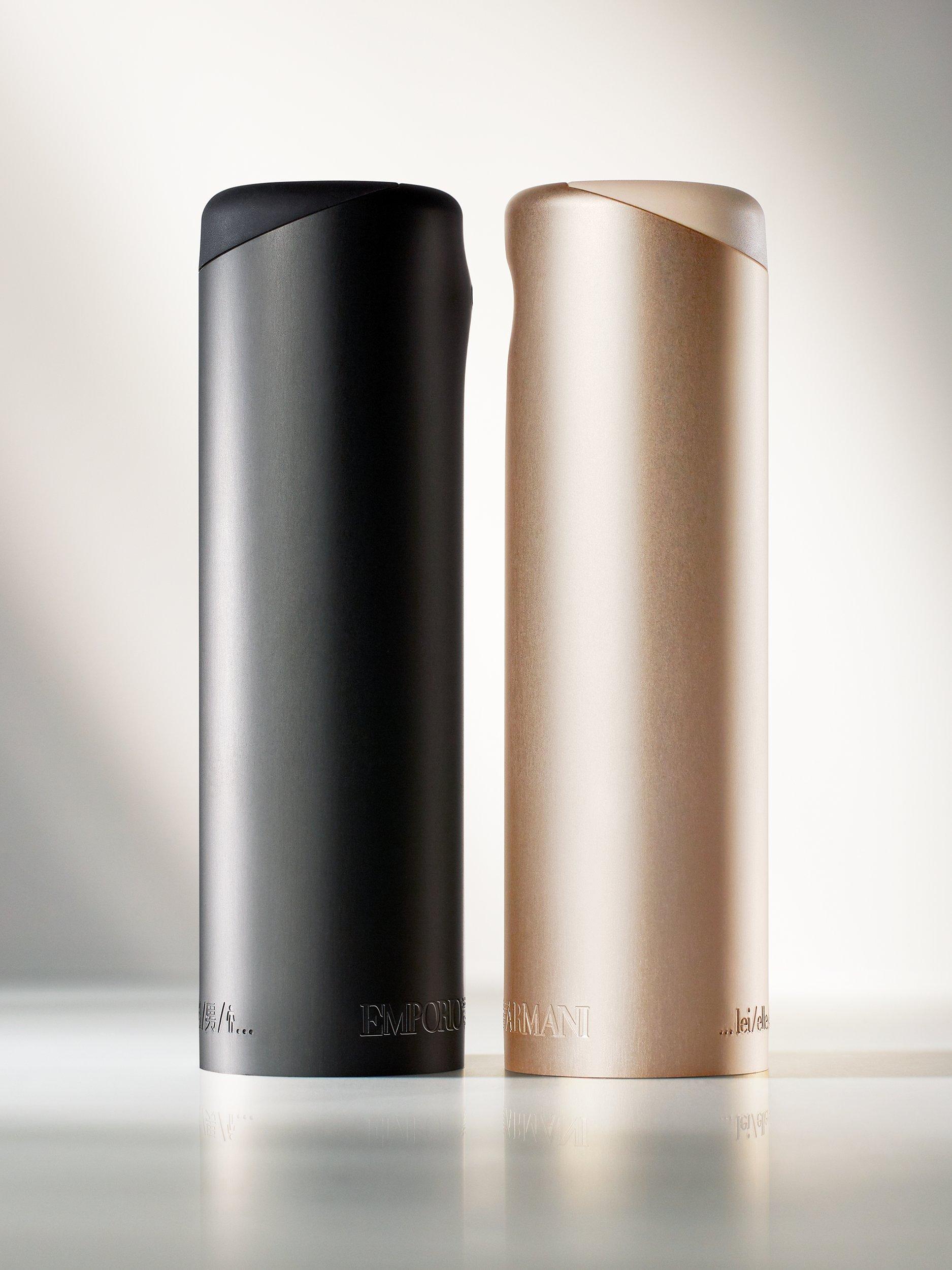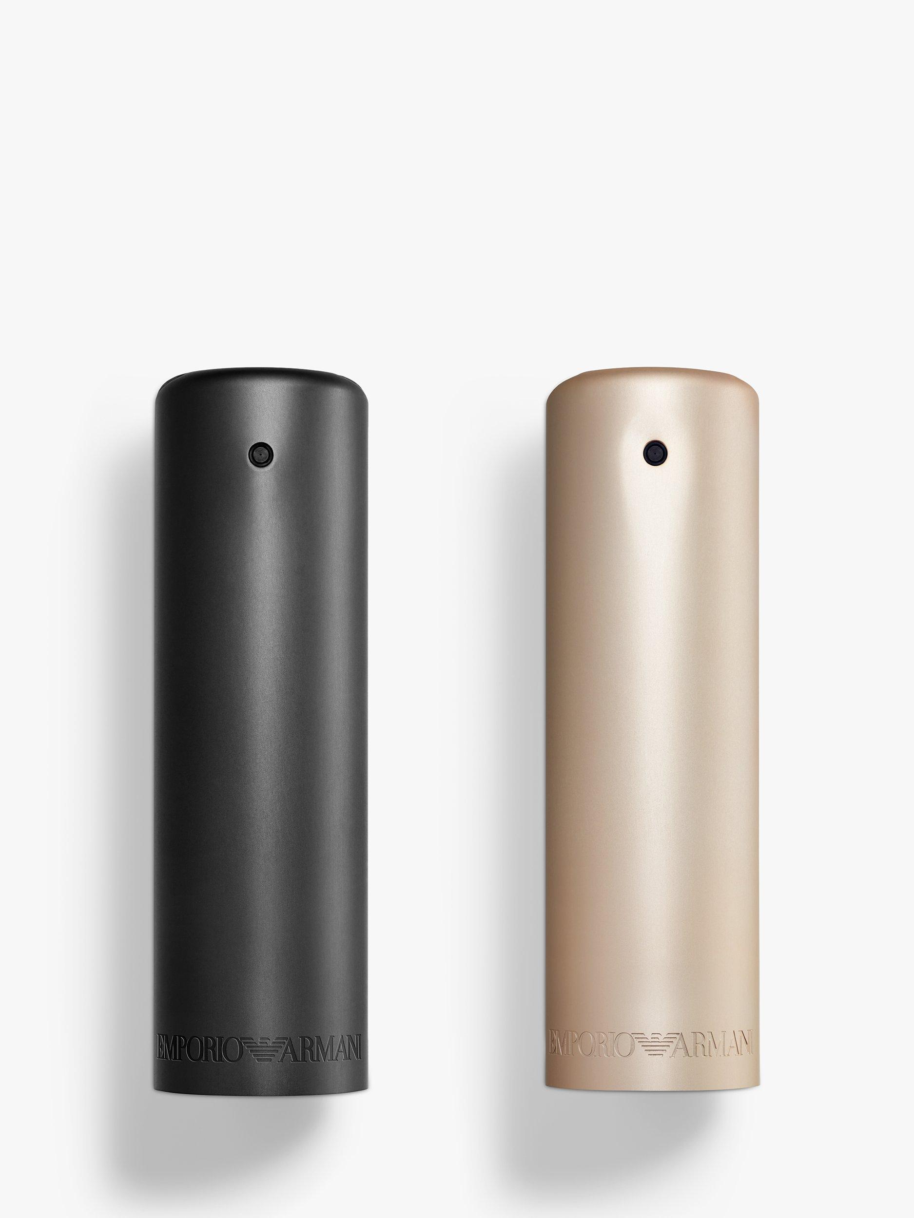 The minimalist, essential anthracite-tinted bottle only becomes truly complete when it merges with that of its counterpart, Emporio Armani She. They magnetically attract each other.