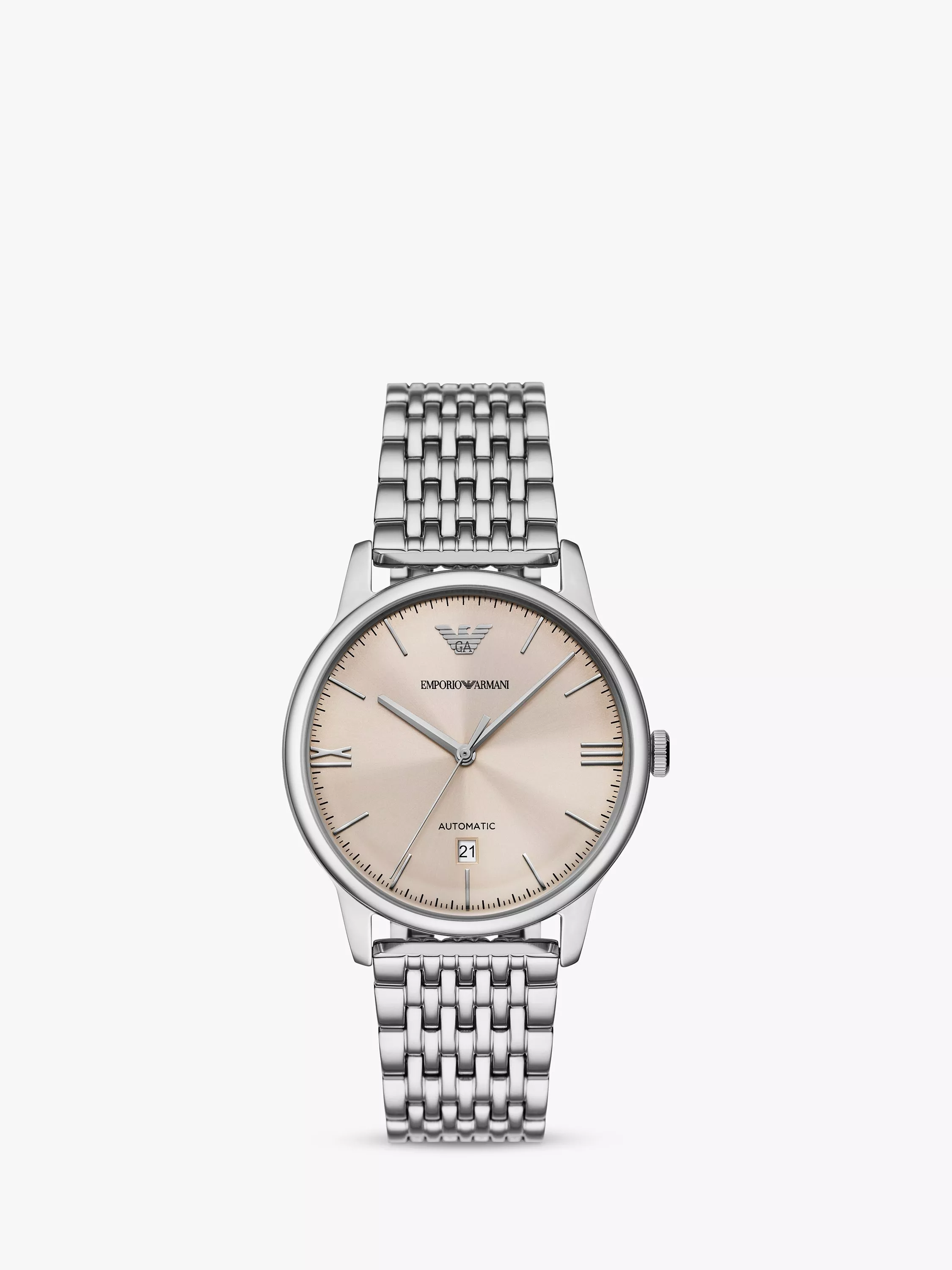 Emporio ArmaniMen's Automatic Date Bracelet Strap Watch, Eggshell/Silver AR60082