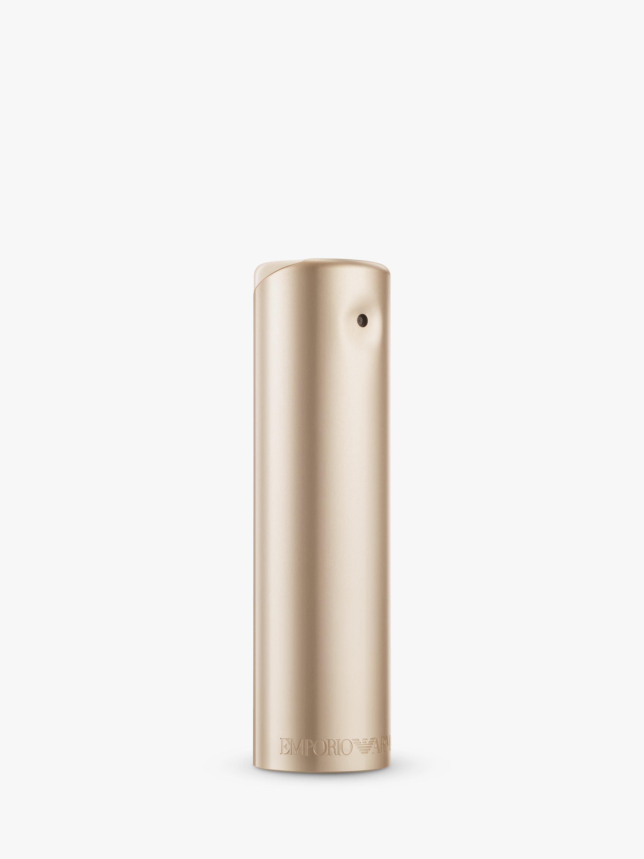The essential rose gold-tinted bottle only becomes complete when it merges with that of its counterpart, Emporio Armani He. They magnetically attract each other.