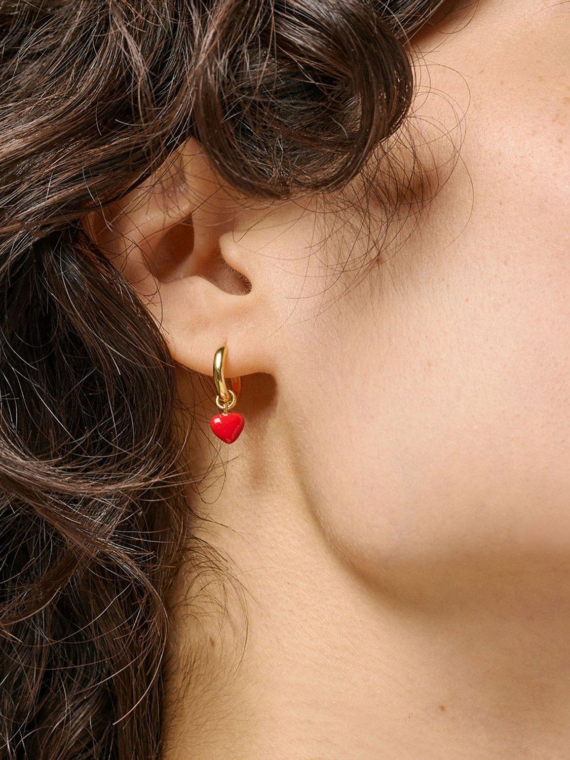 The Amore hoops from ENAMEL Copenhagen are a pair of cool, chunky hoops with a substantial heart pendant in different colors. Amore means love in Italian, and that's what these lovely earrings exude. They are love-filled in a cool and playful way, but if you ever want to tone down the look a bit, the chunky hoop can of course also be worn without the pendant, just like most other hoops from ENAMEL Copenhagen. Length 20 x 7 mm.