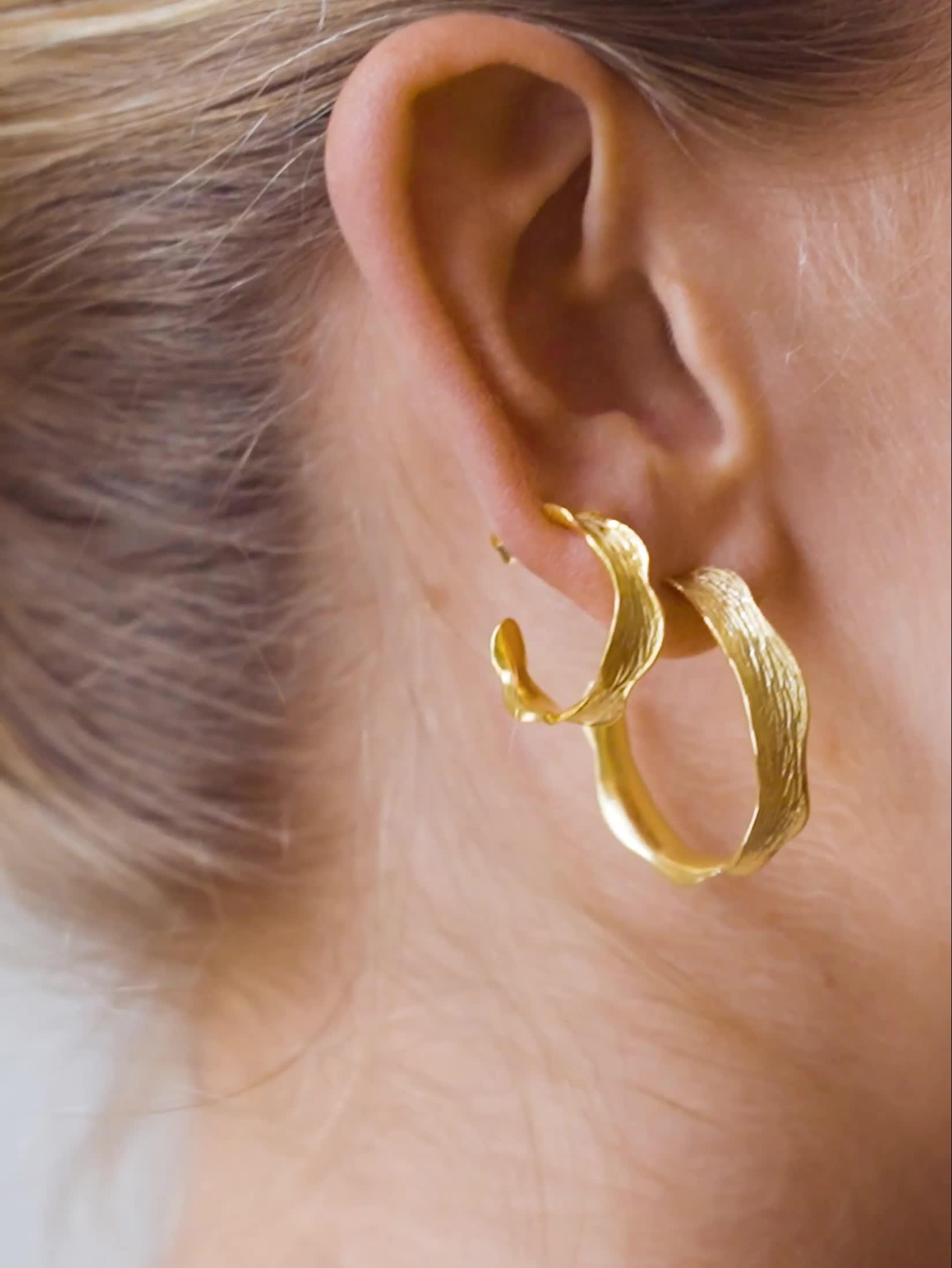 With their fluid, wavy shape and textured finish, these hoops will add a cool feature to your outfit. They're light, but also striking and can easily be combined with other earrings. Suitable for pierced ears only.