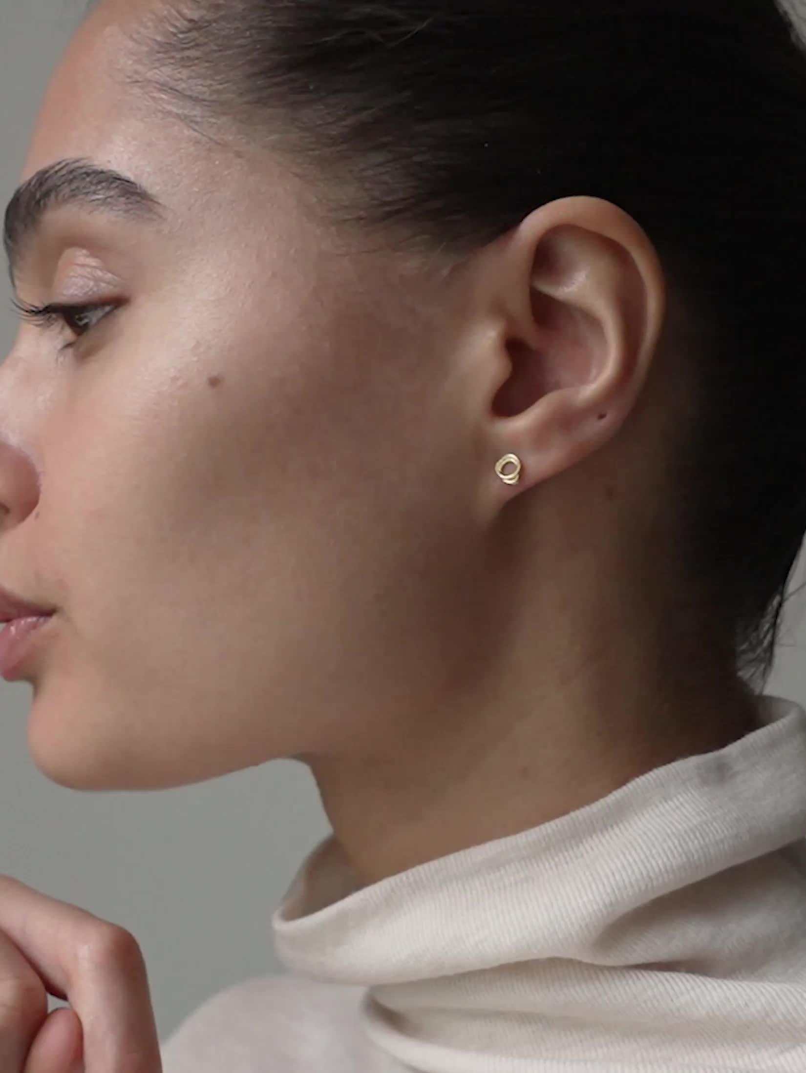 The Bellu Mini Stud is a small and elegant version of the brand's popular Bellu design. The two fine, twisted rings are close together, creating a simple yet characterful small ear stud with an organic design language. The earring is perfect for those who desire a discreet piece of jewellery with personality. Suitable for pierced ears only.
