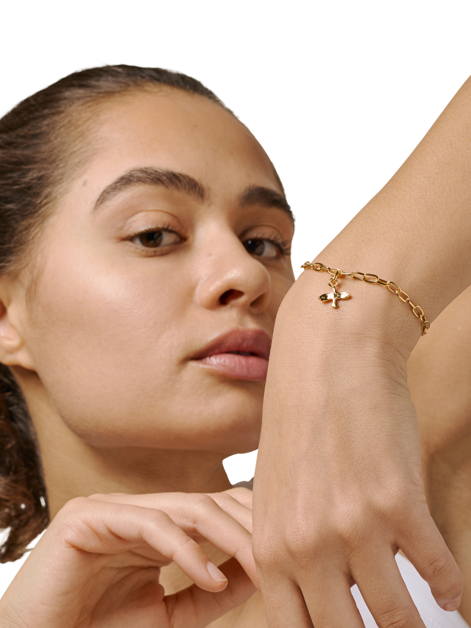 The clasp on this charm can be removed and, with the remaining eyelet, you can attach it to many of ENAMEL Copenhagen's hoop earrings, bracelets and necklaces.