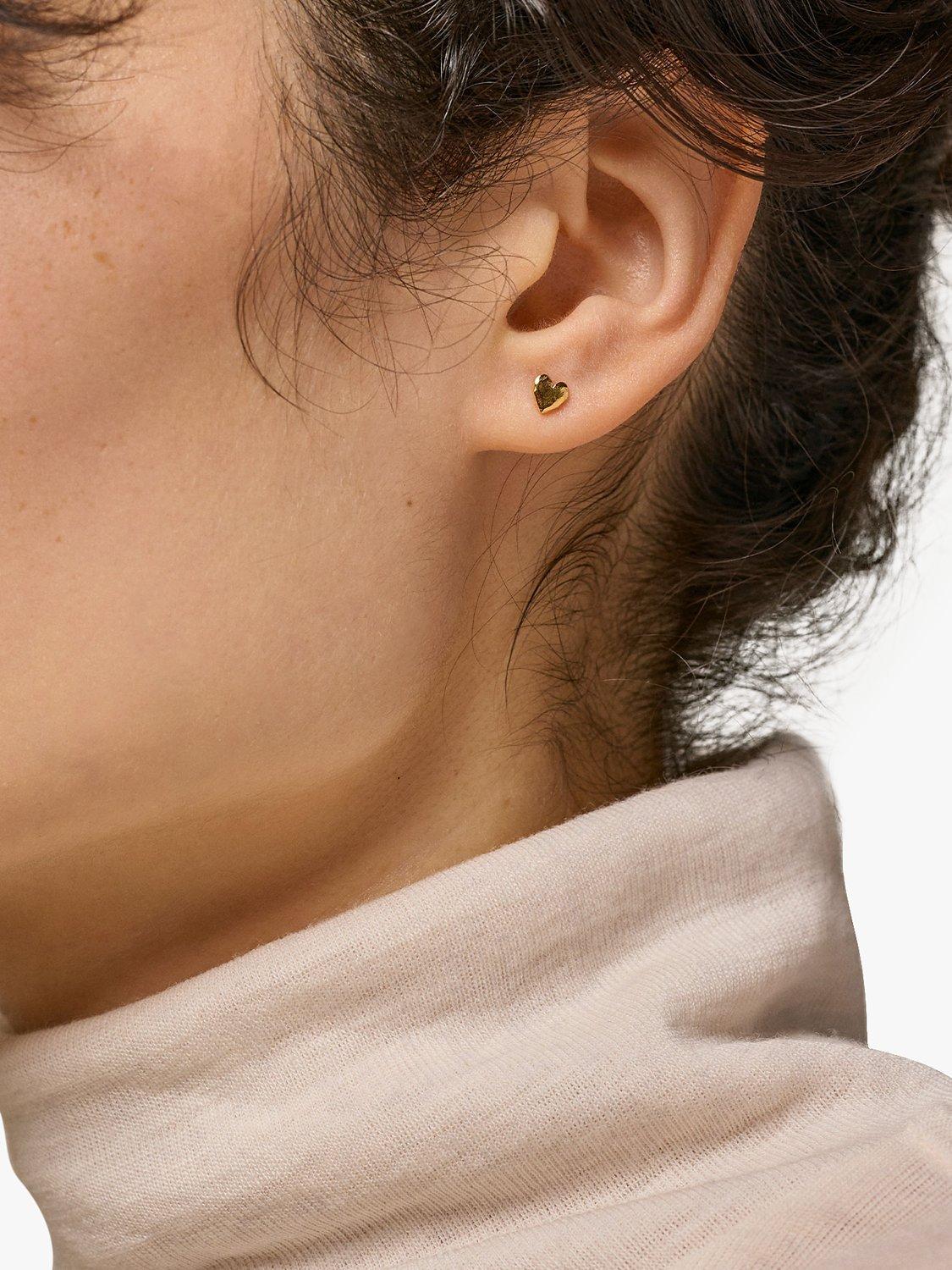ENAMEL Copenhagen's Heart earrings in 18 karat gold-plated sterling silver are the sweetest little hearts in a handmade, unique design. They will blend in with any combination of earrings and remind you of those you hold dear. The Heart earrings are also available in silver. Length 5 mm.