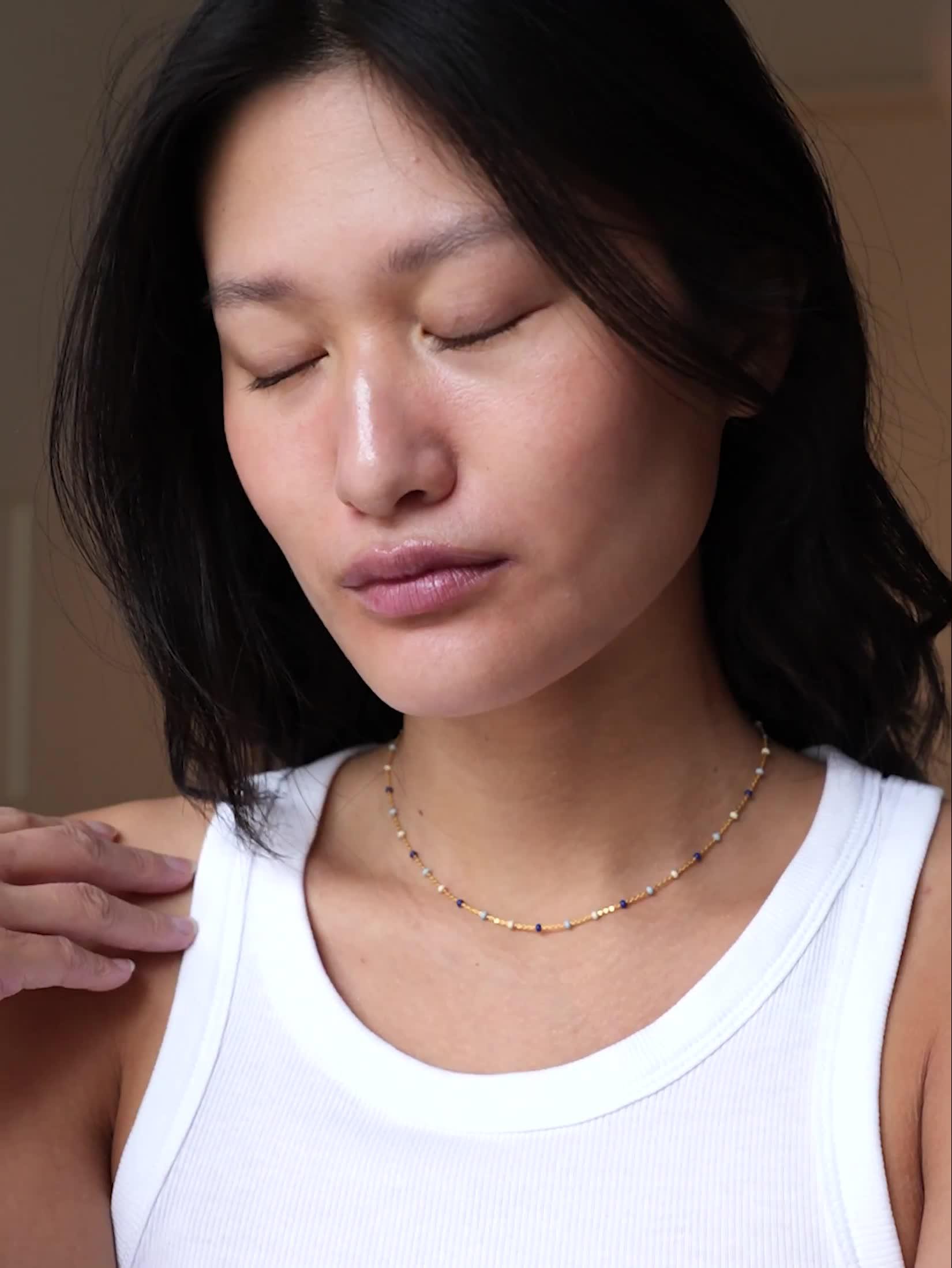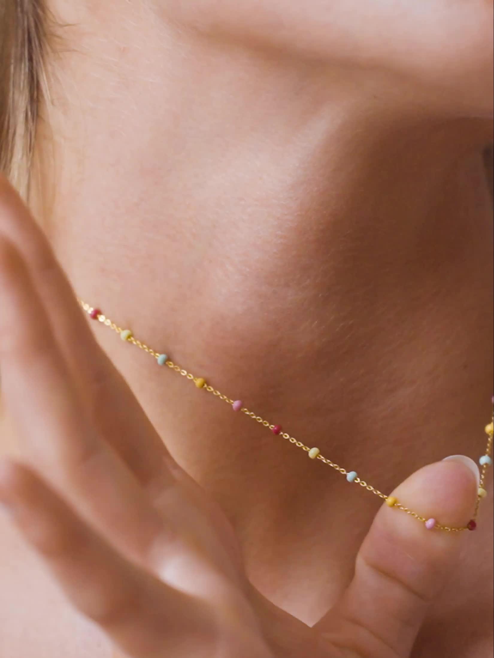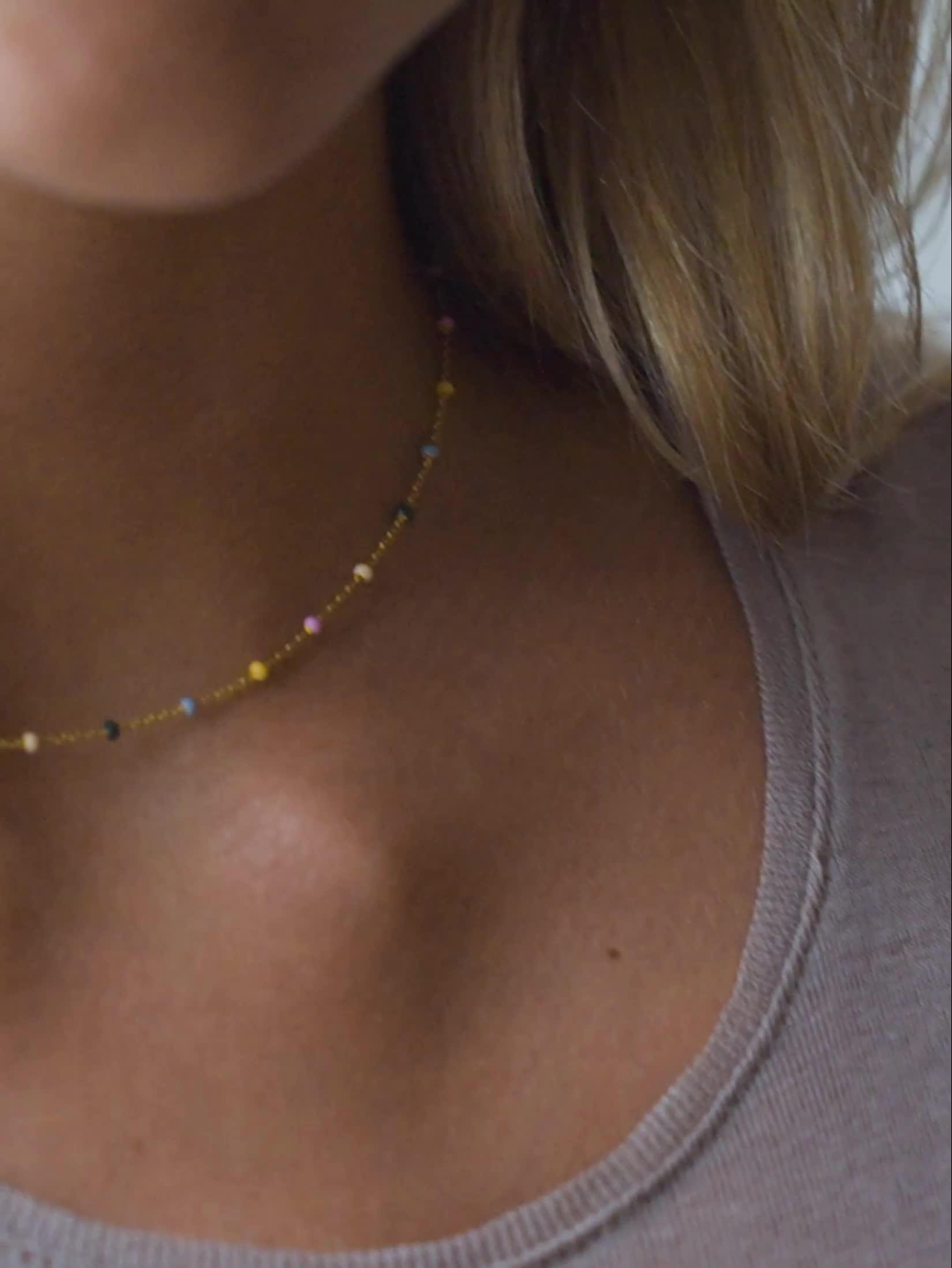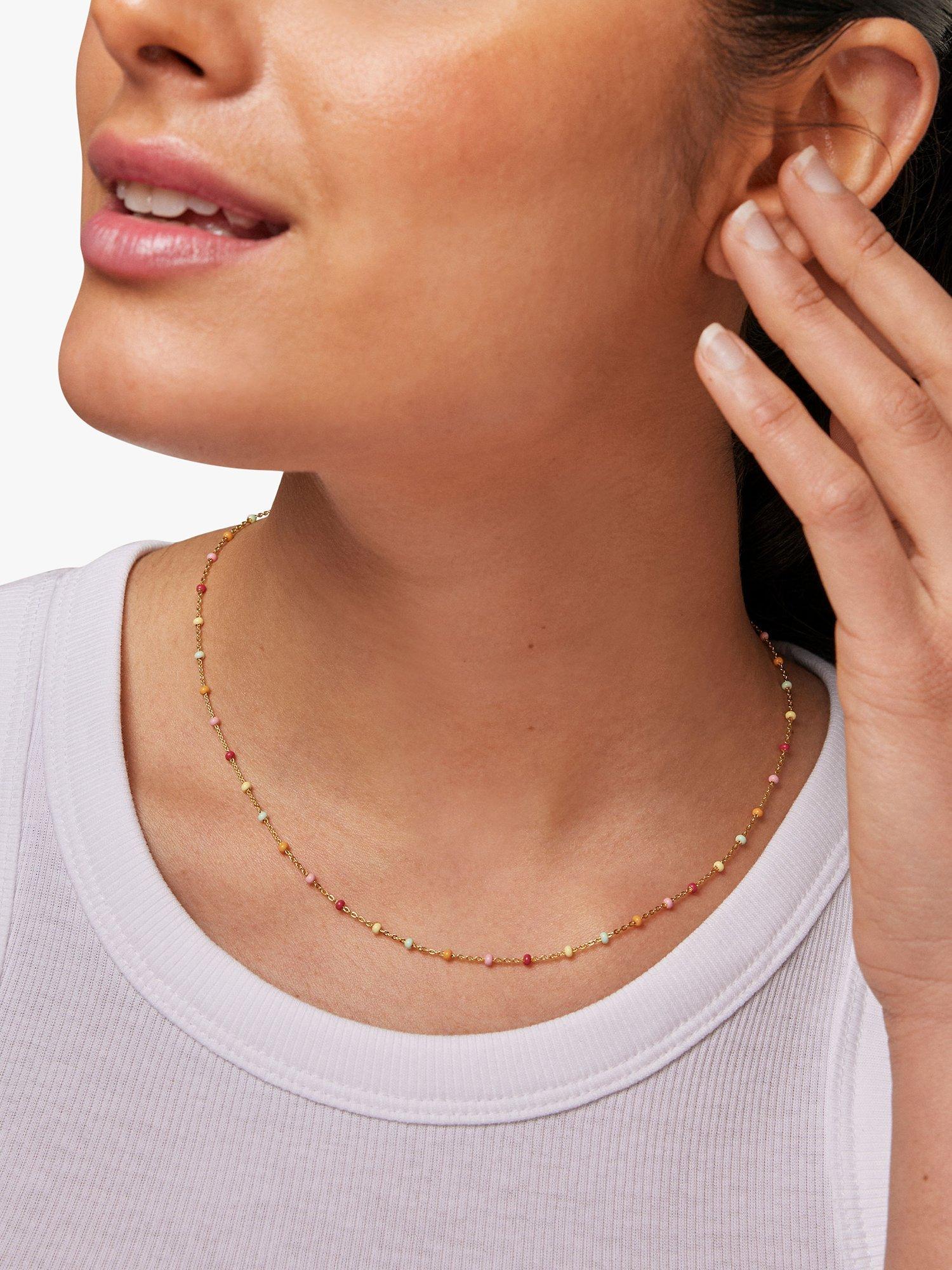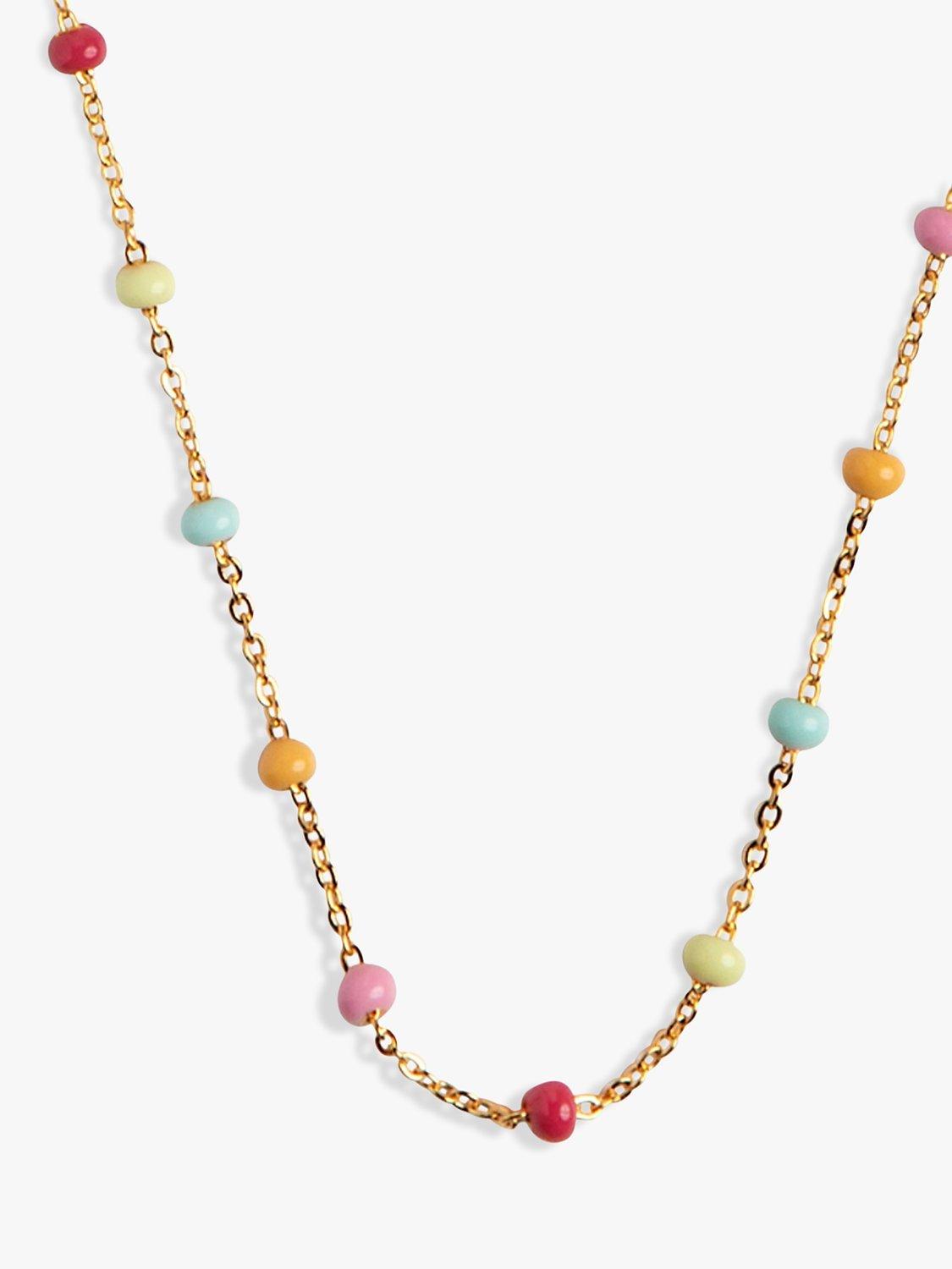 The Lola necklace is a fine chain with small enamels adding a lovely detail to any outfit. Combines with other necklaces beautifully. Available in several colours.