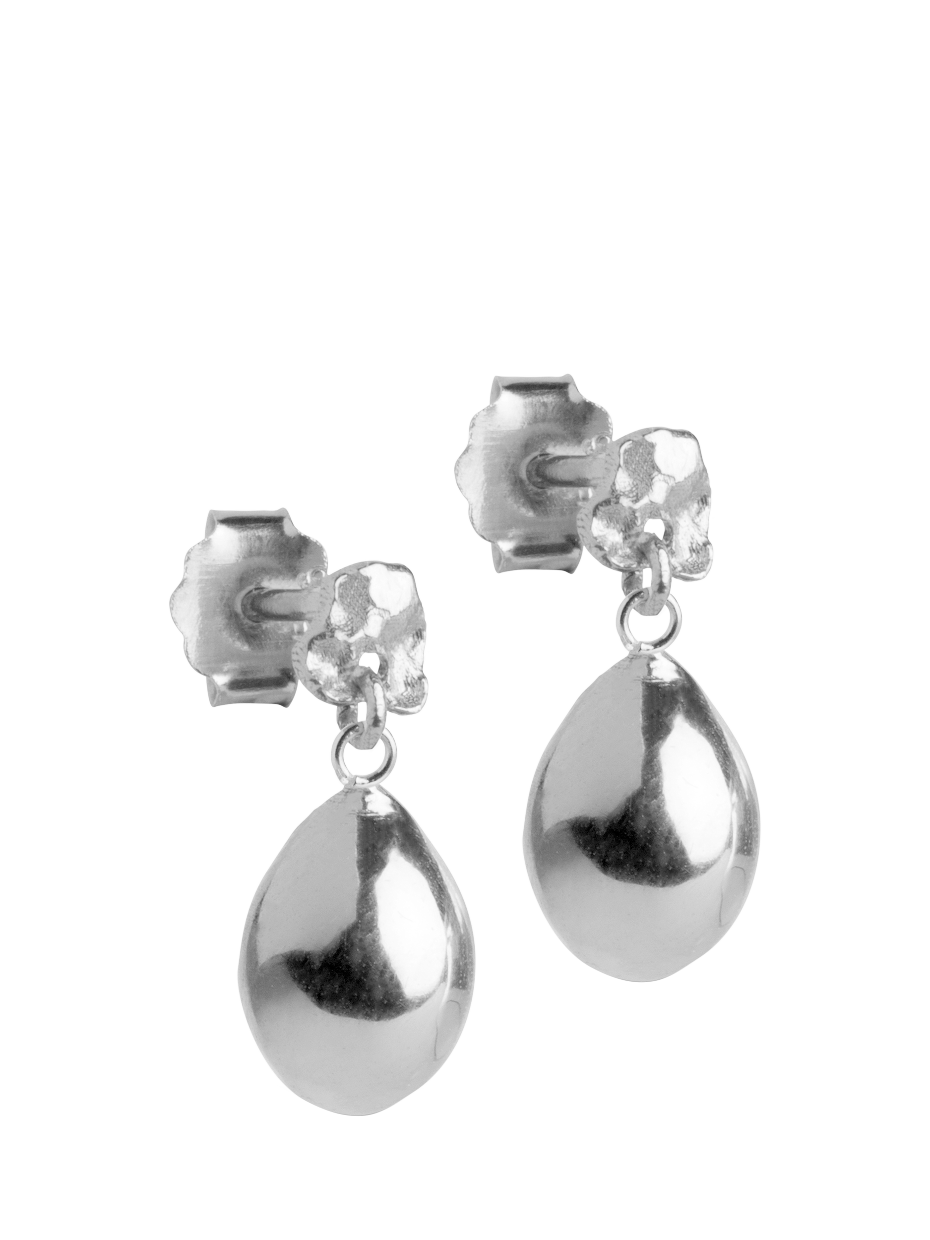 The Poe stud, in 925 sterling silver, has a bit of everything. The small handmade stud stands in fine contrast to the large drop-shaped pendant for a playful expression that's perfect for creating a lovely earring mix.