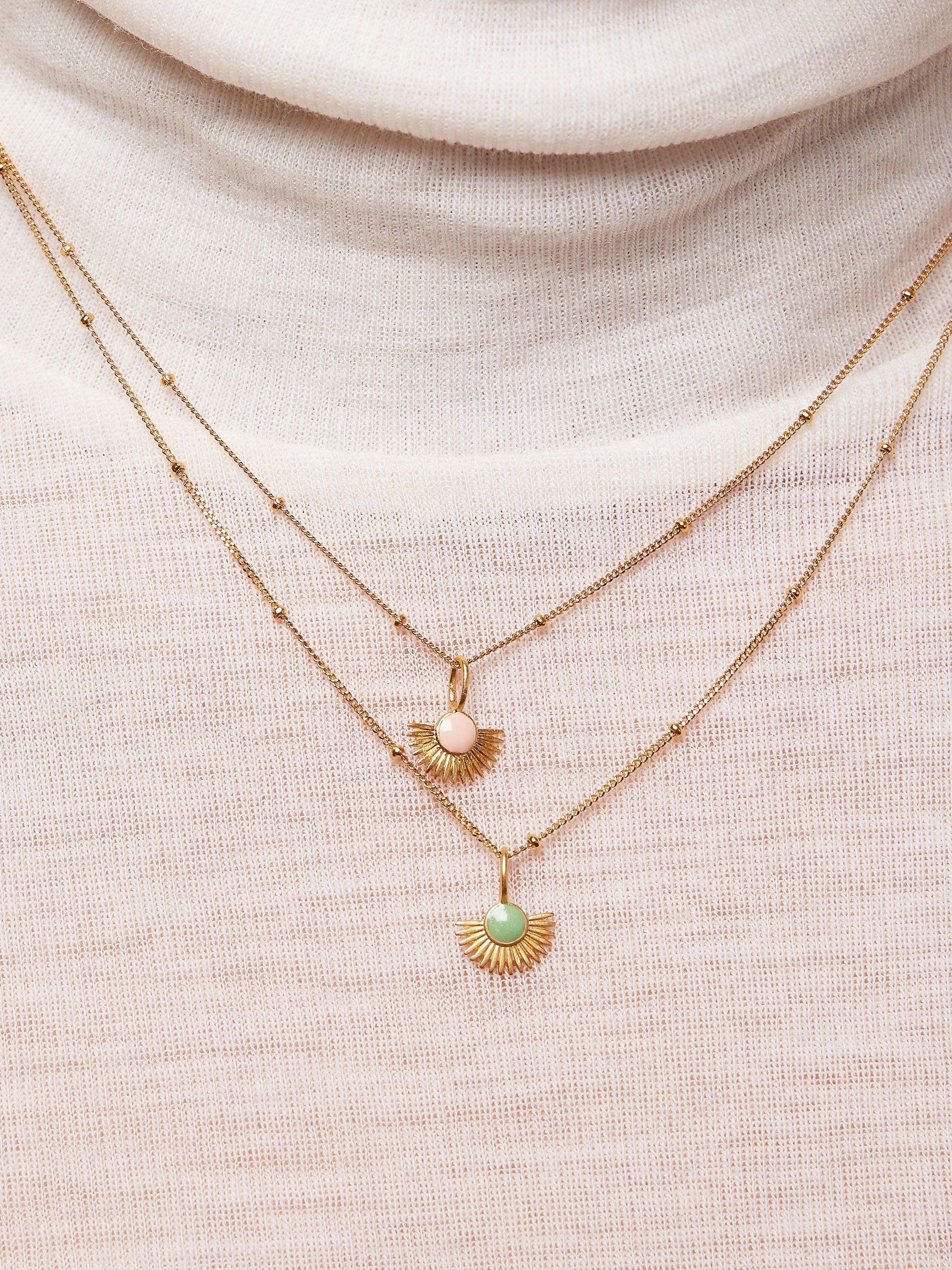 The Soleil necklace in gold-plated sterling silver comes in lovely enamel colors. Soleil is also available as earrings and bracelet and adds a unique and different detail to your outfit. Length 45 cm.