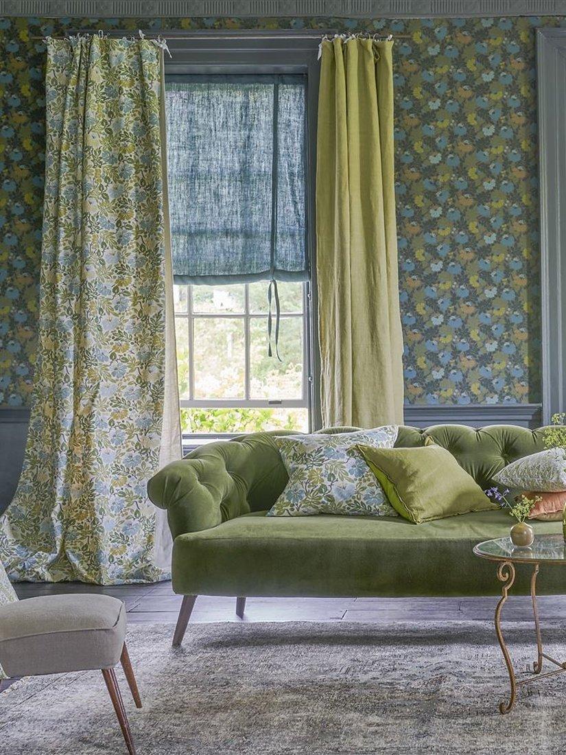 The original wallpaper fragment was in a single tonal colour block print, in a panelled form, edged with vertical stripes. The team at Designers Guild re-worked this as an all-over pattern in multi-colour tones to create a more versatile design.