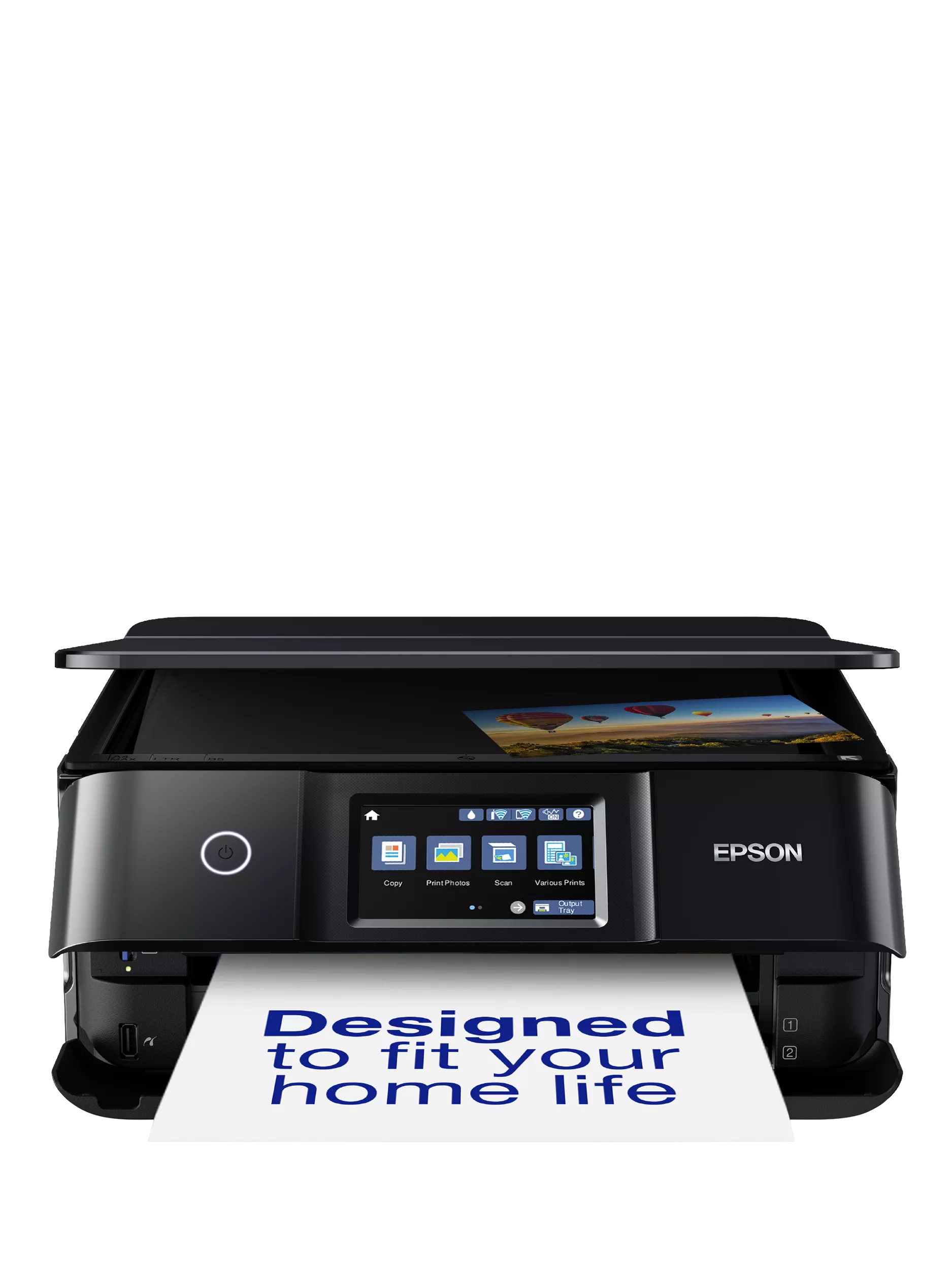 Show off your photos at home with this compact multi-function printer, with rich and realistic colour and detail. This A4 printer caters for both everyday needs, and producing superior quality glossy photos. It has flexible mobile connections for easy smart printing, a large touch-screen, dual paper trays, and six individual ink tanks for an enhanced colour range, ideal for printing photography.