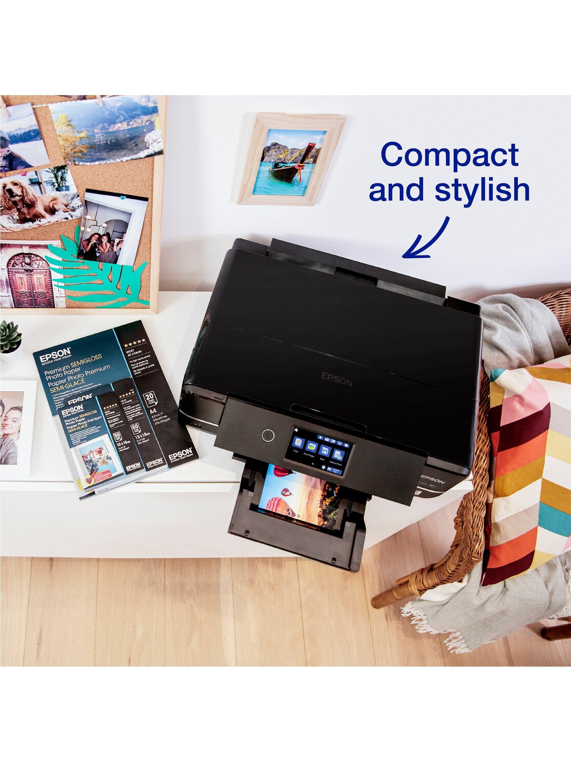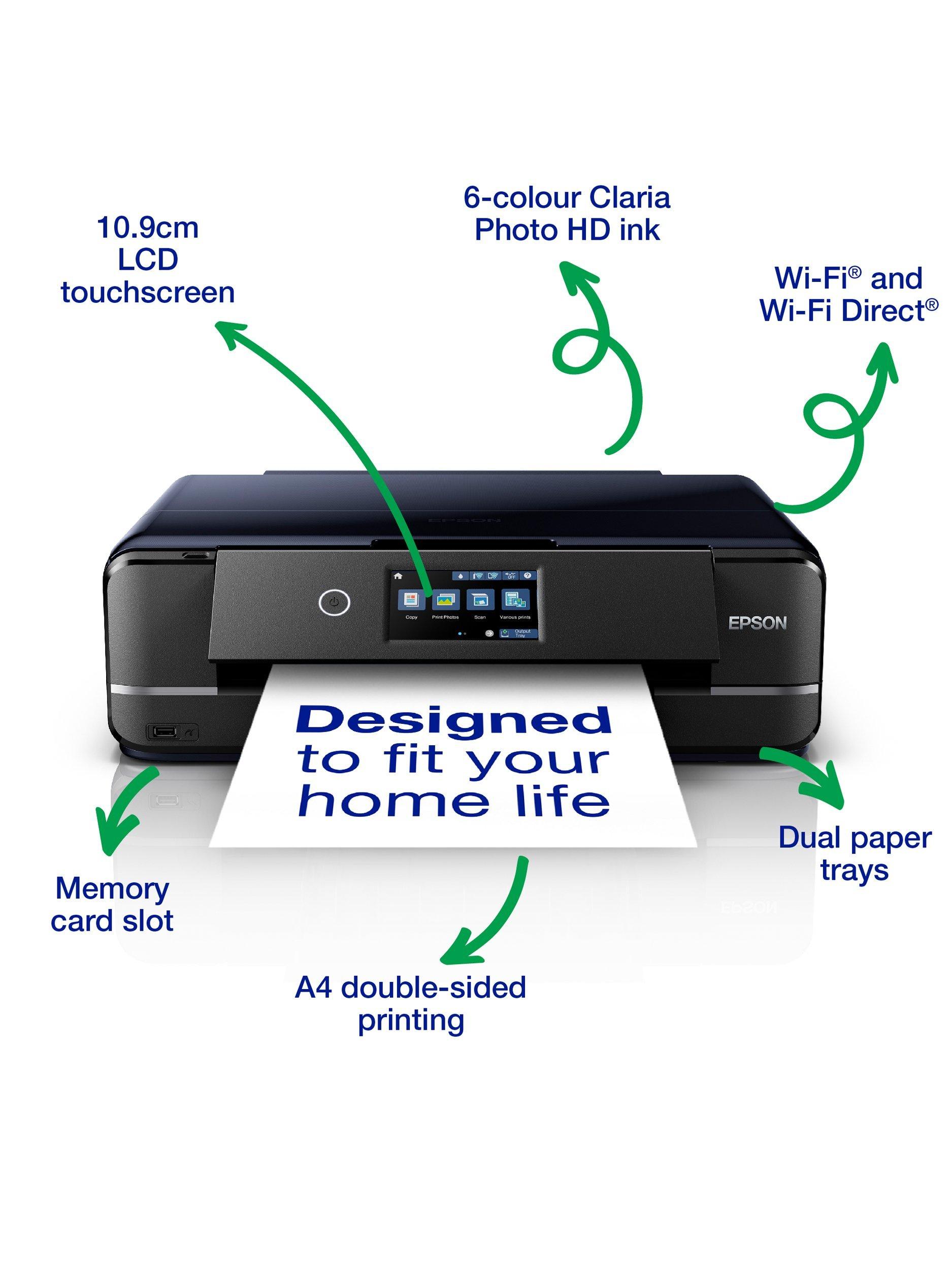 Perfect for photography enthusiasts looking for exceptional photo printing and great all-round performance, the Epson Expression Photo XP-970 prints, scans and copies to a high standard. You can print up to A3 size and scan and copy up to A4. It uses six individual inks for high quality colour prints, and features a large LCD touch screen. A range of wireless printing options give you easy convenience, including Wi-Fi, Wi-Fi Direct, and via the Epson iPrint app on your mobile device. Or you can still print via a wired Ethernet connection. You can print double-sided onto A4, and with dual paper trays you can feed A4 paper and photo paper at the same time, with A4 paper being fed by a speciality in-tray at the rear. Even so, this compact and stylish printer has a small footprint so it'll fit neatly into your set up.