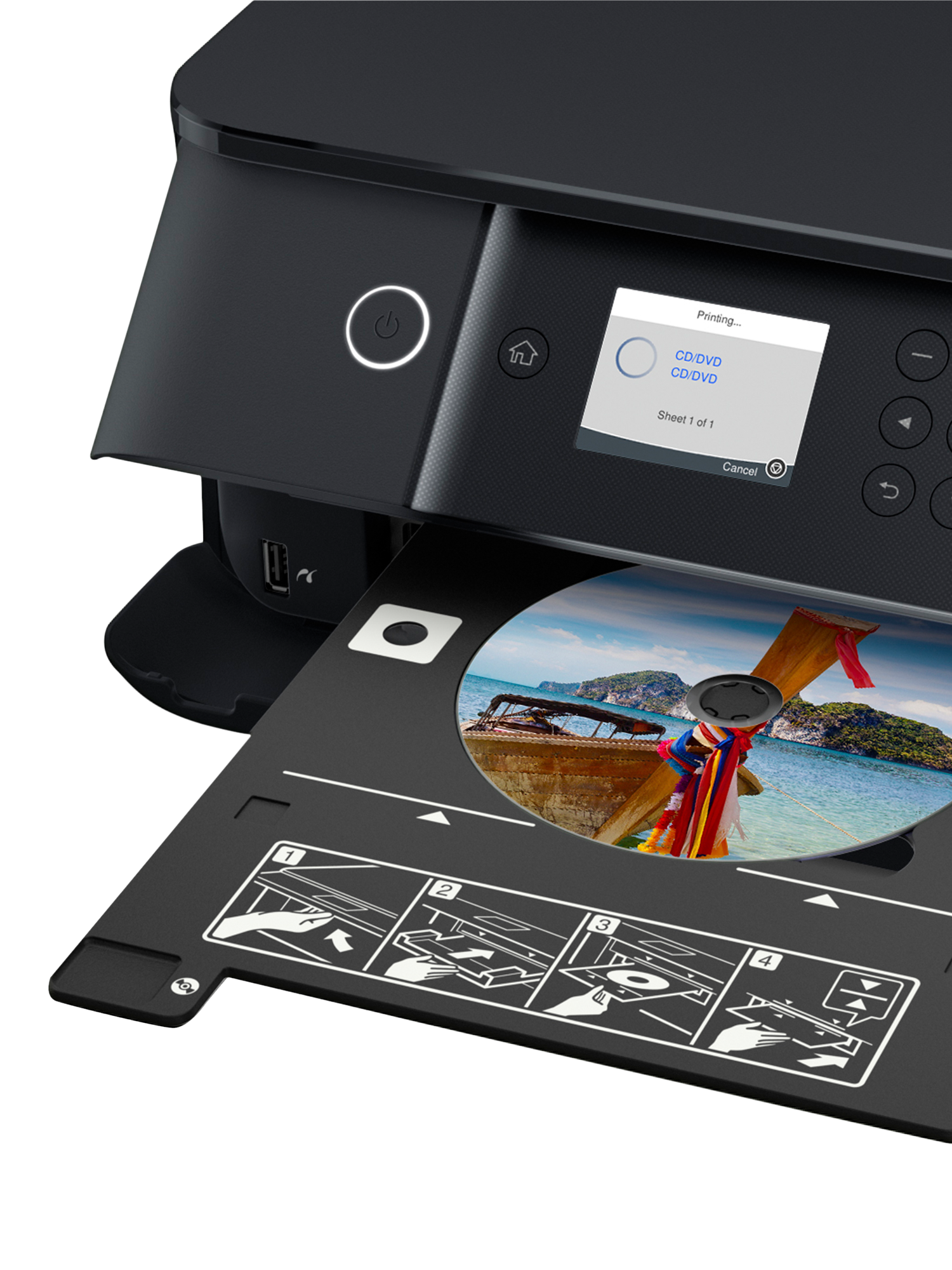 The control panel and 6.1cm LCD touch screen can be tilted to ensure you get the best viewing angle. The XP-6100's dual paper trays allow you to fill one with plain A4 paper for documents and the other with photo paper. Or you can print directly from the USB port or memory card using the SD card slot. Double-sided printing saves on paper, and you can print directly onto CDs and DVDs too.