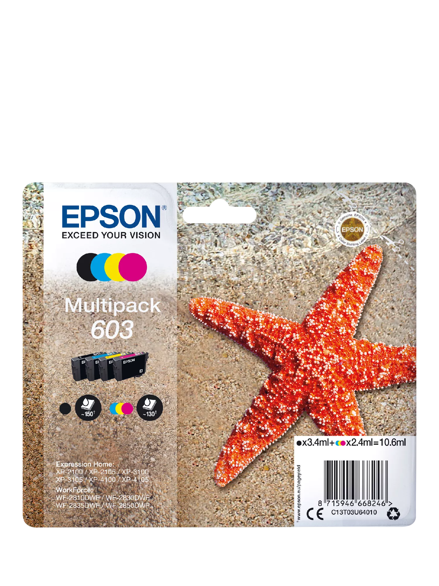 Epson colour inkjet cartridge multipack including Black, Cyan, Magenta and Yellow.