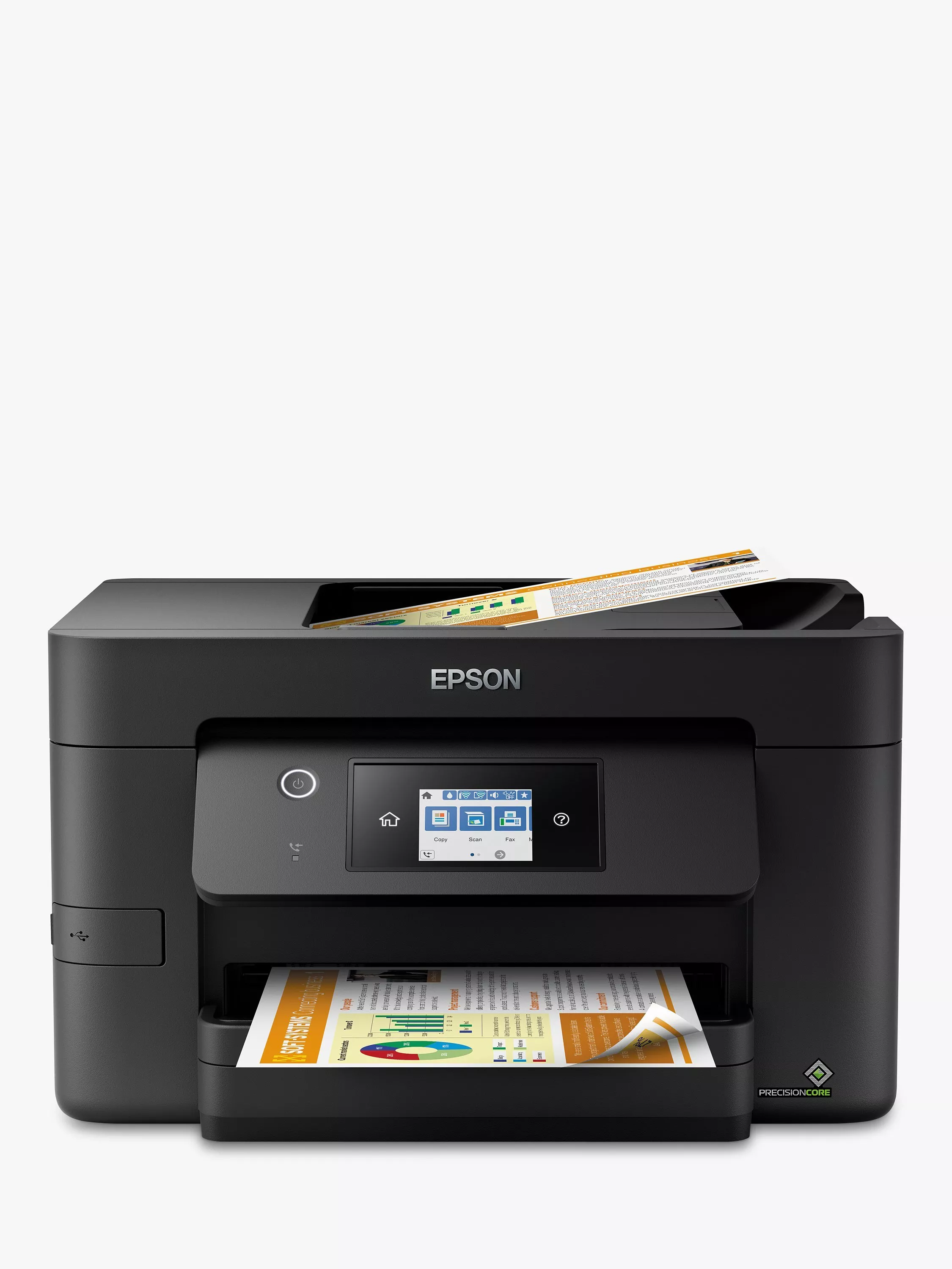 At speeds of 21ppm for monochrome and 10ppm for colour, you get fast, business-quality printing. Epson’s PrecisionCore print-head delivers laser-like prints at 4800 x 2400 resolution. A 35-sheet automatic document feeder and paper-saving duplex functionality increase efficiency too.